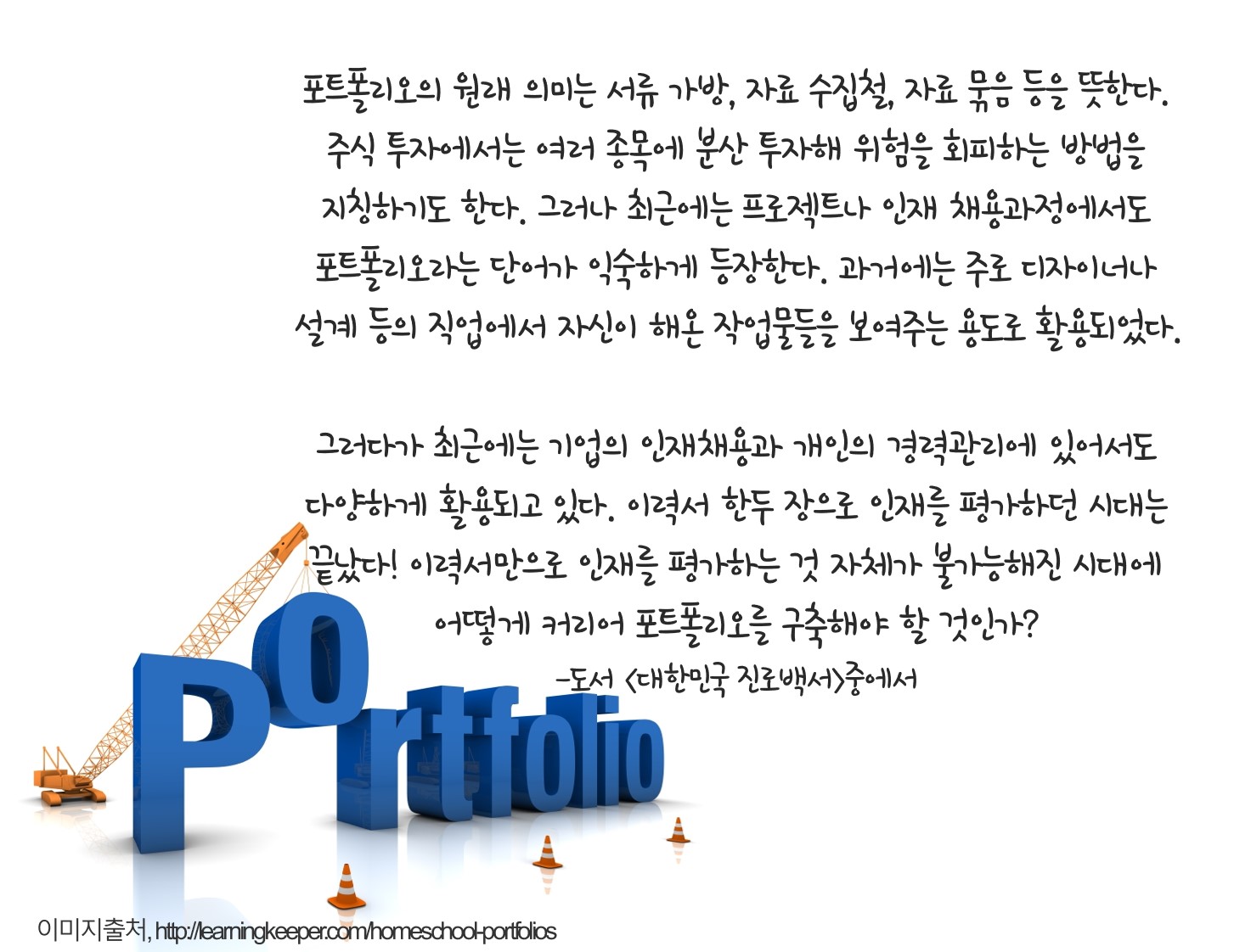 성공적인 진로설계를 위해서는 ‘포트폴리오’를 체계적으로 만들어보는 것이 좋다. 그런데 많은 사람들이 ‘커리어 포트폴리오’를 언급하지만 정작 마땅한 정의조차 없어 우선 내 나름대로 정리해봤다.
