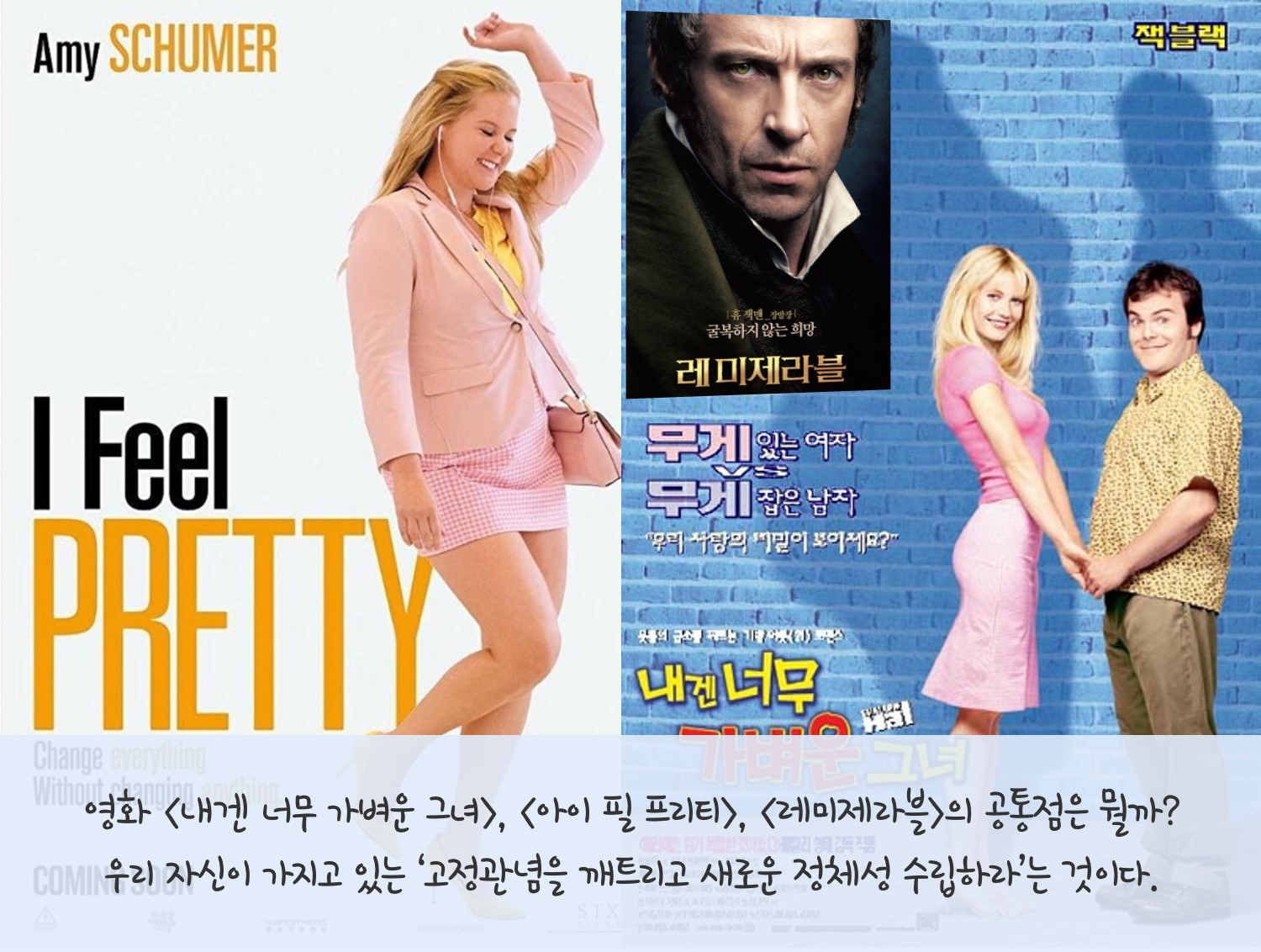 영화 <내겐 너무 가벼운 그녀>, <아이 필 프리티>, <레미제라블>의 공통점은 뭘까? 우리 자신이 가지고 있는 ‘고정관념을 깨트리고 새로운 정체성 수립하라’는 것이다.