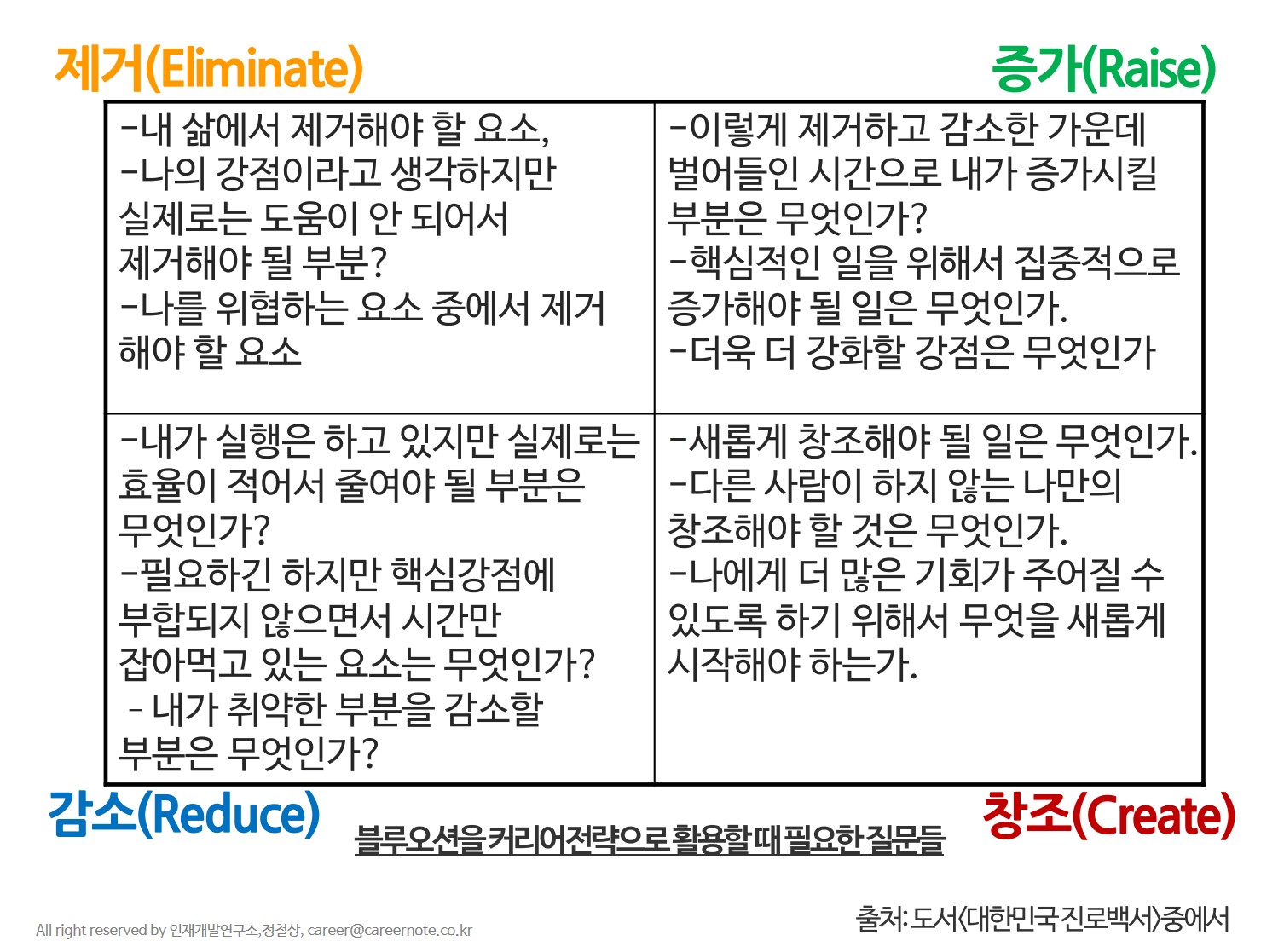 블루오션의 액션프레임워크 ERRC 활용한 경력관리 전략