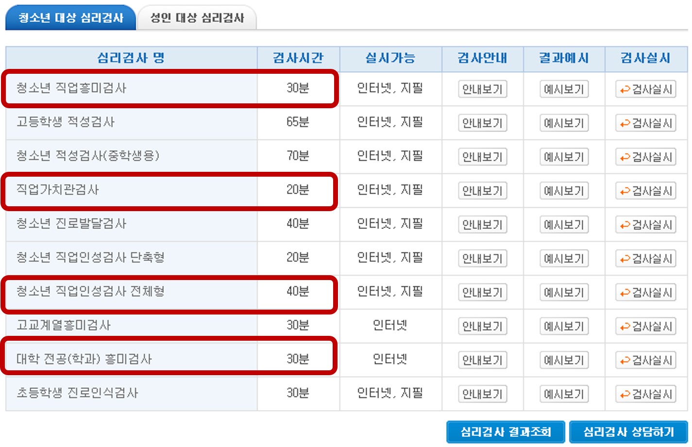 워크넷을 통해 무료로 자신의 직업흥미유형을 유추해보면 되겠다. 이 외의 직업검사로는 스트롱 직업흥미검사 등이 있다.