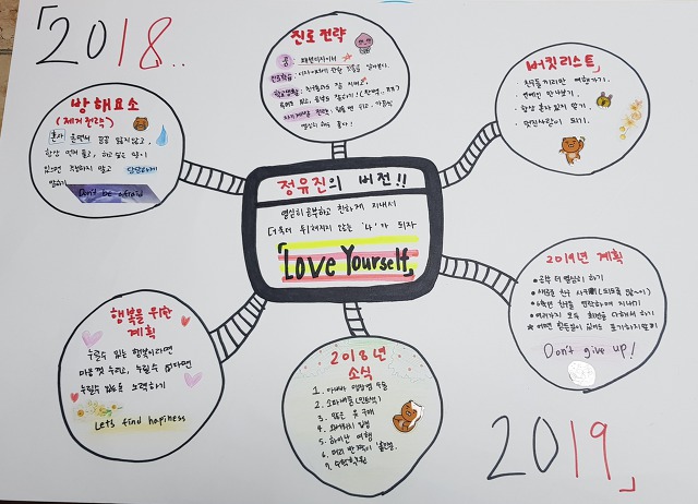 (사진은 중학교에 올라가는 딸아이가 지난해 불과 30여분만에 만든 2019년도 계획표다. 깜놀^^ 올해도 기대중입니당~ 제 것도 순식간에 예쁘게 만들어 주더라고요^^*)