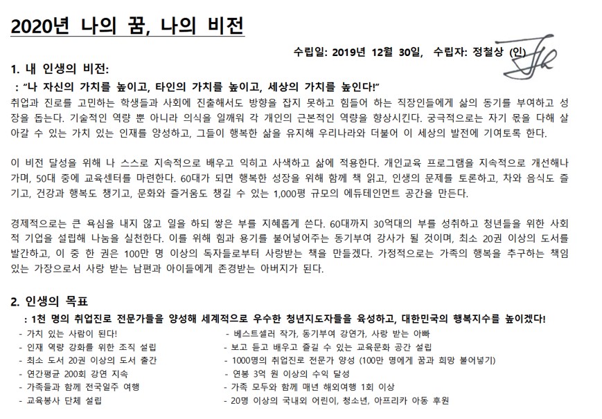 어디에서나 진행할 수 있는 정철상 교수의 비전워크숍 9단계 : http://cafe.daum.net/jobteach/Sjz8/31