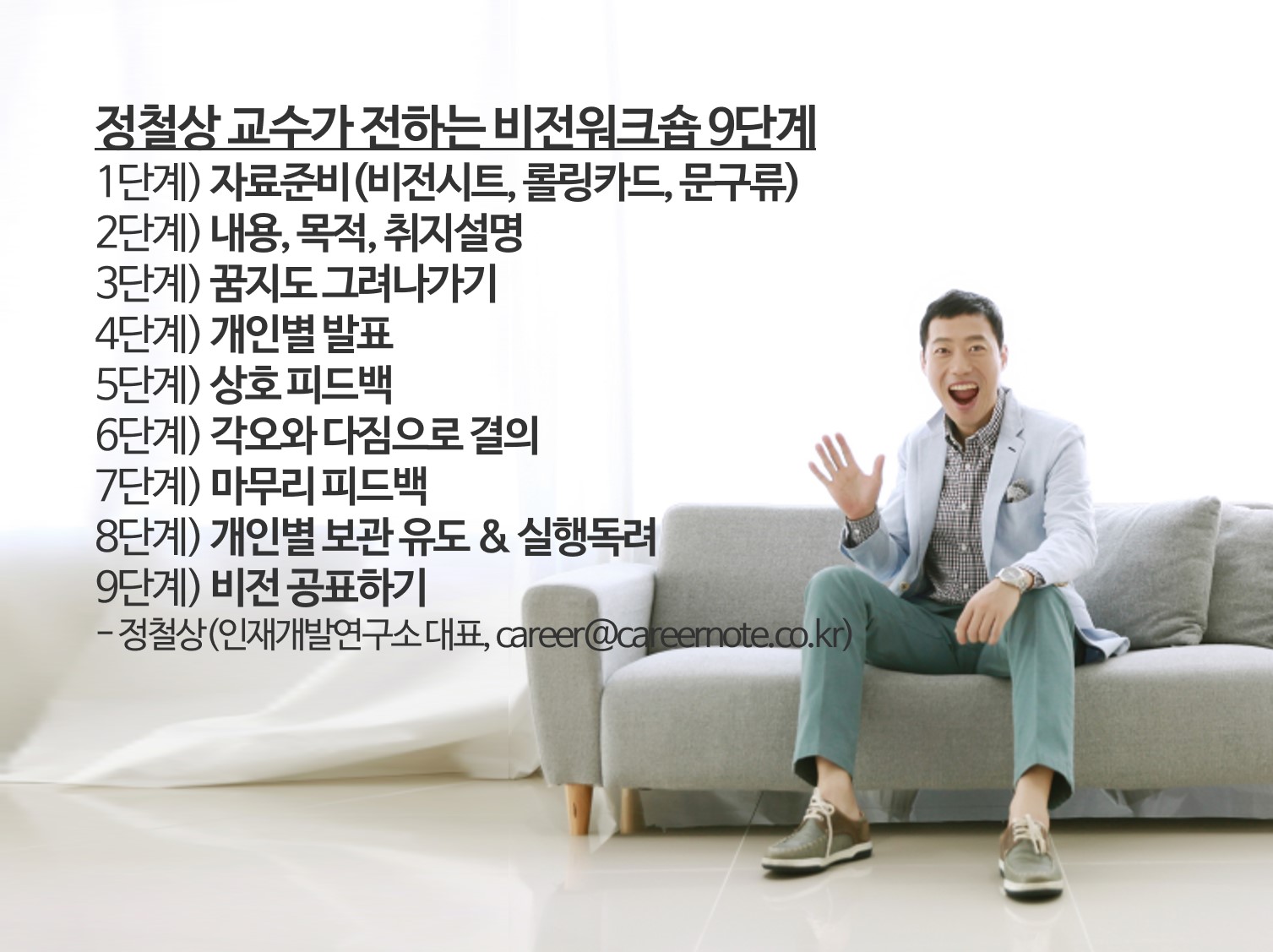 어디에서나 진행할 수 있는 정철상 교수의 비전워크숍 9단계 : http://cafe.daum.net/jobteach/Sjz8/31