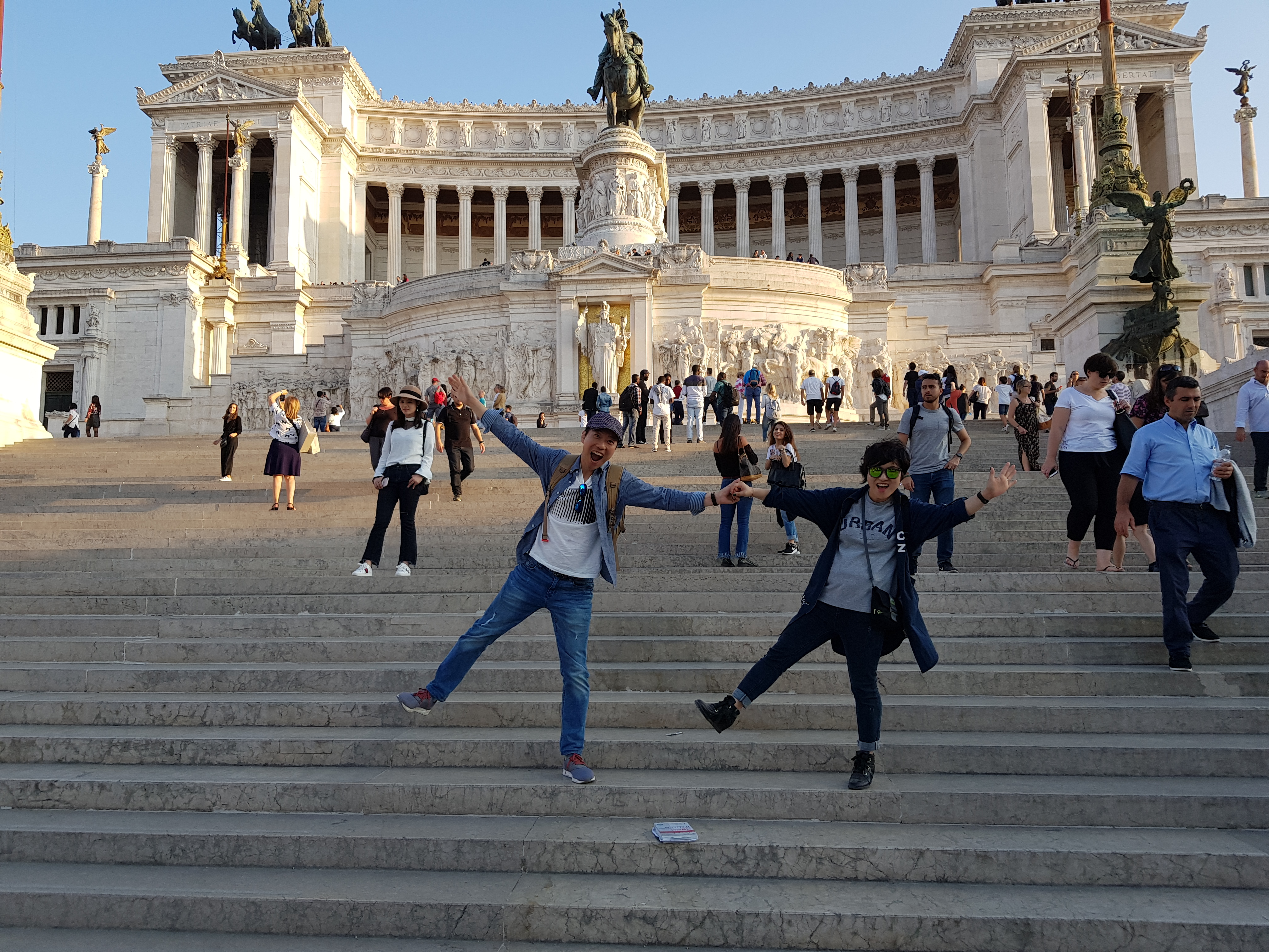 캄피톨리오 광장을 내려와 바로 오른쪽에 있는 비토리오 엠마뉴엘레 2세 기념관으로 갔습니다. 이곳을 등지고 앞을 바라보면 베네치아 광장이 바라보이는데요. 그 전경이 무척 아름답습니다.