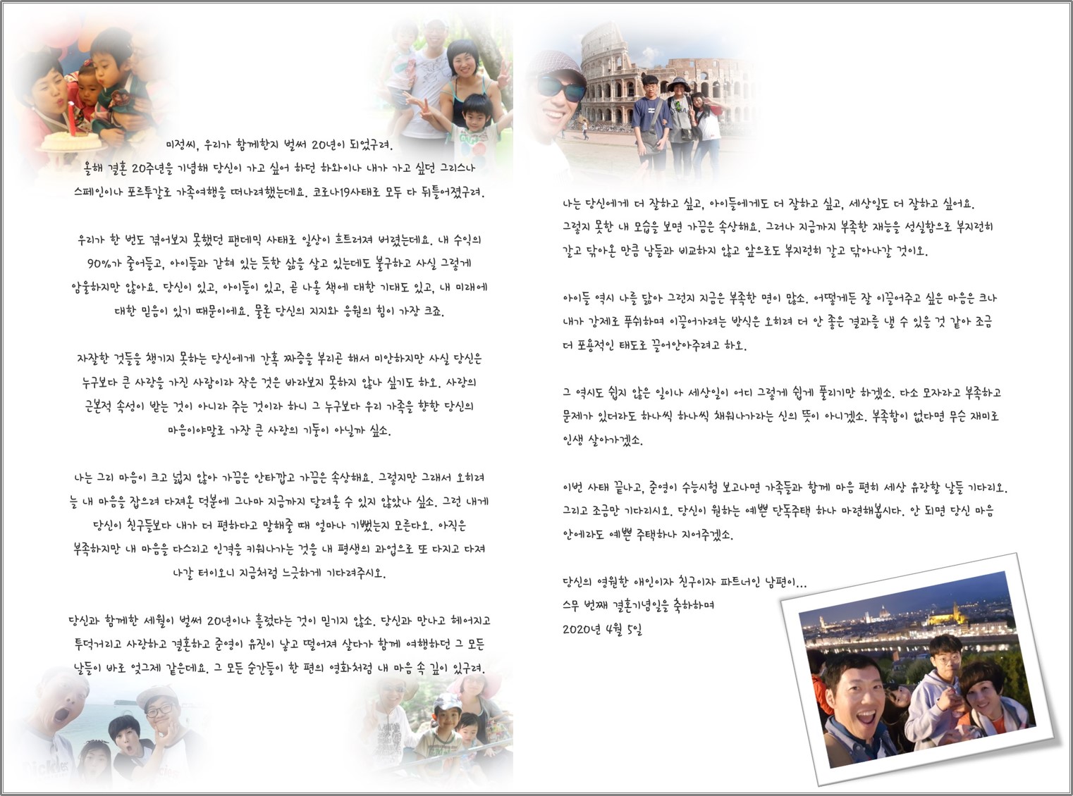 제 나이 서른아홉에 직장생활에 사표를 던지고 세상에 출사표를 던지겠다고 아내에게 말했는데요. 사실 불안했습니다. 어디 갈 때도 없고 받아줄 곳도 없고 해서 독립을 선택한 부분도 있었거든요. 그런데 아내가 한결같이 믿어주니 덕분에 상상도 못할 정도의 성장을 해나갈 수 있었습니다. 이번 신종코로나 사태로 몇 달째 마이너스 통장만 늘어나고 있으니 눈칫밥을 줄법도 한데요. 하지만 지금도 한결같이 저를 믿고 신뢰해주니 그저 고맙고 감사합니다.