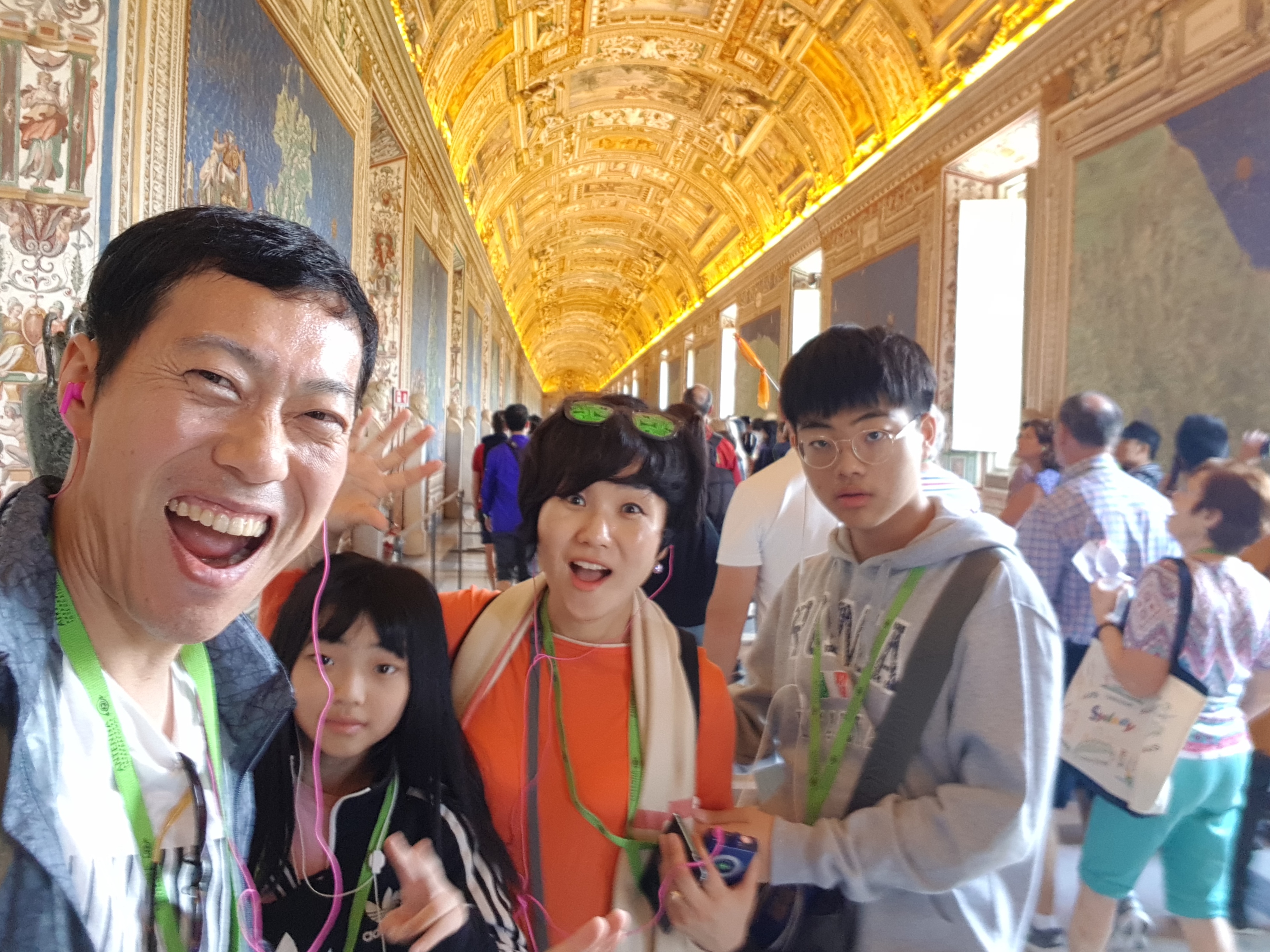 정말 쉴 틈 없이 계속해서 행군 형식으로 투어가 진행되기에 아침 든든히 챙겨먹고 간식이라도 중간중간 먹어둬야 체력이 방전되지 않지 싶습니다. 유진이 만보계를 보니 이날 바티칸에서만 만보계 숫자가 20,000이 훌쩍 넘을 정도였답니다. 호텔에서 가이드와 만나기로 한 약속 장소까지의 걸은 거리도 포함했지만 이날 10km 넘게 걸었을 겁니다. 우리는 그렇게 거의 매일 10km 가량의 거리를 걸어 다녔는데요.