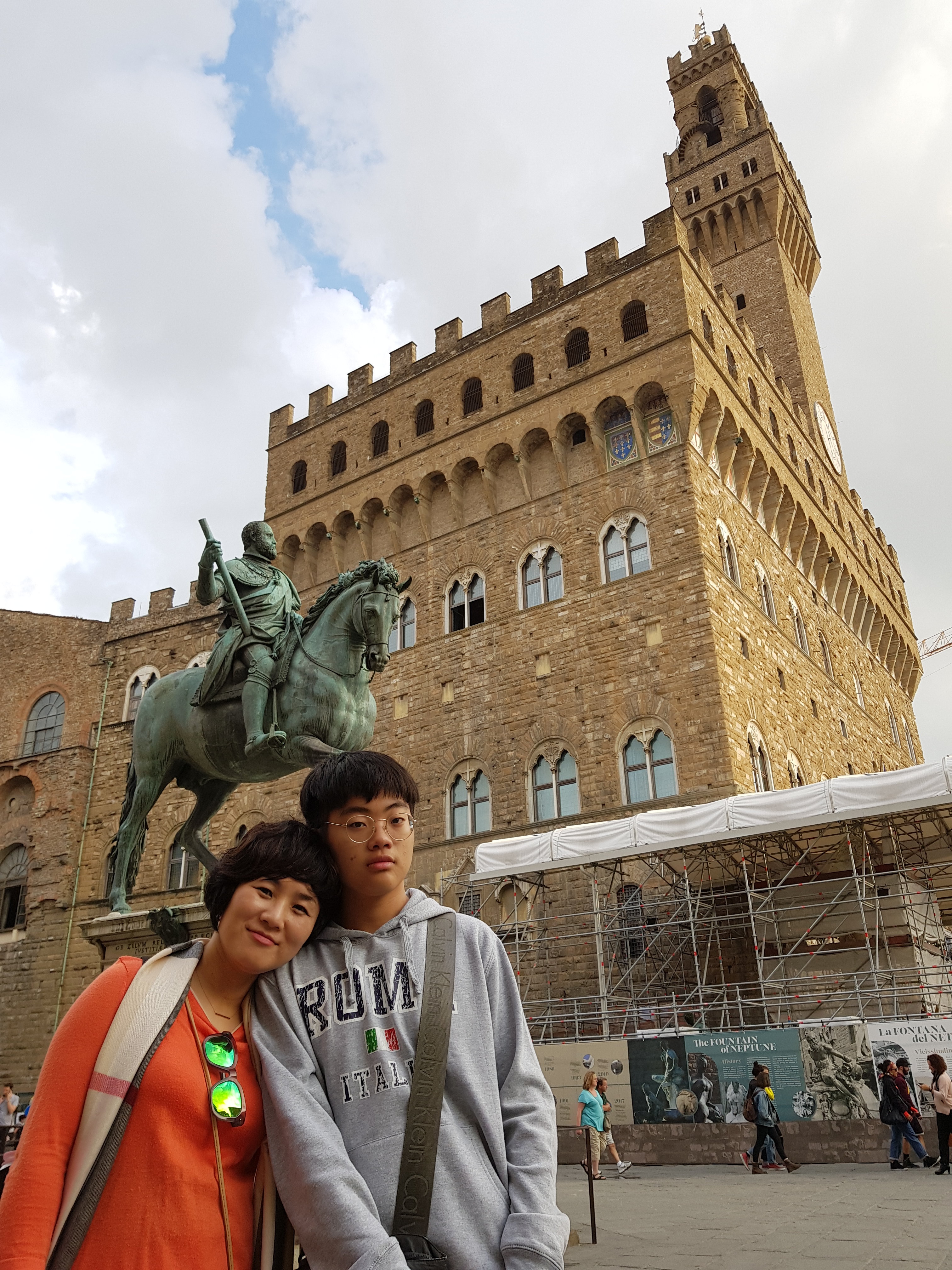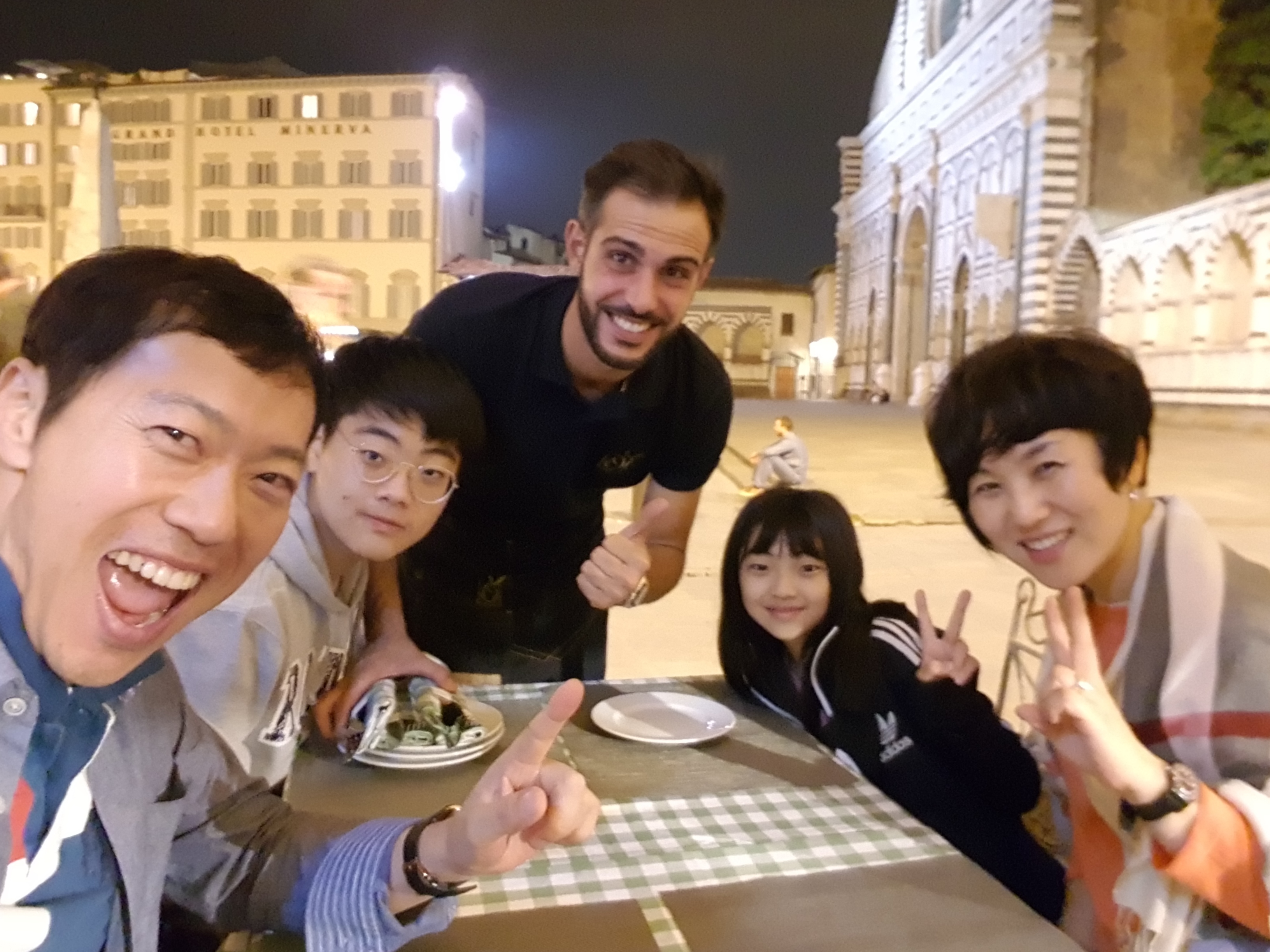 꿈만 같던 로마에서의 3일을 보내고 르네상스의 꽃을 피운 피렌체(Firenze)로 향했습니다. 로마의 골목골목까지 지리가 익숙해질 만하니 곧 이별이란 생각에 아쉬운 마음이 들었습니다. 피렌체행 기차를 놓치지 않기 위해 일찌감치 서둘러 떼르미니역에 도착했습니다. 열차내부는 생각보다 편했습니다. 가족석이라 서로 마주보고 카드게임을 하며 왔더니 눈 깜짝할 사이 피렌체에 도착했습니다. 실제로는 2시간 거리입니다. 피렌체에 도착해 예약한 호텔이 가까이 있어 쉽게 찾을 수 있었습니다. 짐을 풀자마자 곧바로 피렌체 여행에 나섰는데요. 그렇게 일찍 나서서 저녁 9시가 되어서야 돌아왔는데도 전혀 질리거나 피곤하게 느껴지지도 않아서 놀라울 정도로 매력적인 도시입니다.
