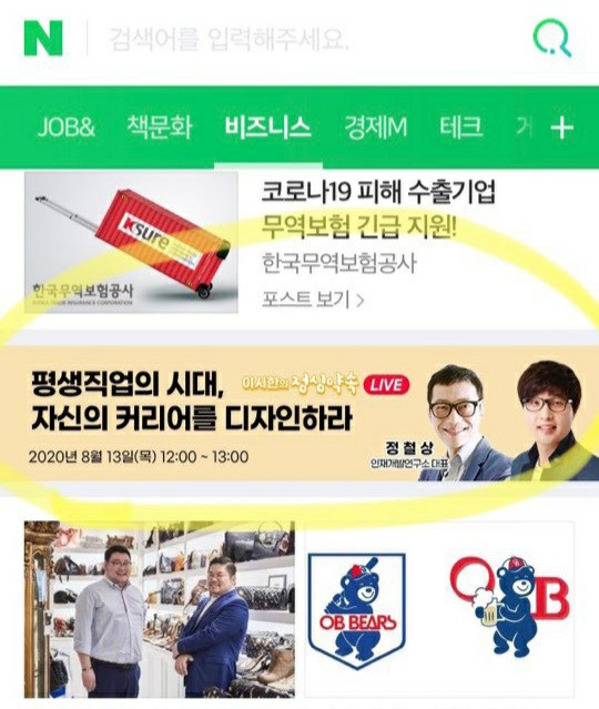 며칠 전부터 네이버 비즈니스에 이시한 선생님과의 인터뷰 배너가 올라와 있다고 합니다. 8월 13일 네이버TV를 통해서 실시간으로 방송되는데요. 직장인들의 점심시간에 맞춰 오후12시부터 1시까지 실시간으로 방송한다고 합니다.