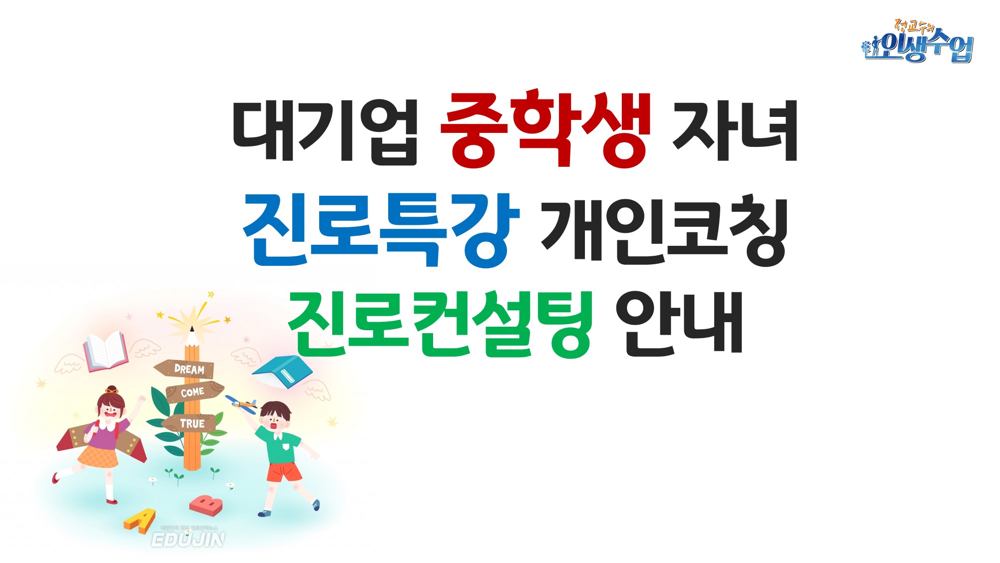 코로나19의 장기화로 인해 자녀의 ‘진로’ 문제로 어려움을 느끼고 계신 부모님들 많으실 건데요. 그래서 한 대기업에서 마련한 진로 프로그램에 참여하게 되었답니다. 비대면으로 학생들에게 어떻게 진로를 설계해나가야 좋을지에 대한 특강과 더불어 1:1 개인코칭을 진행하게 되었답니다. 짧은 시간임에도 깨달음을 얻을 수 있는 멋진 시간 되실 겁니다.