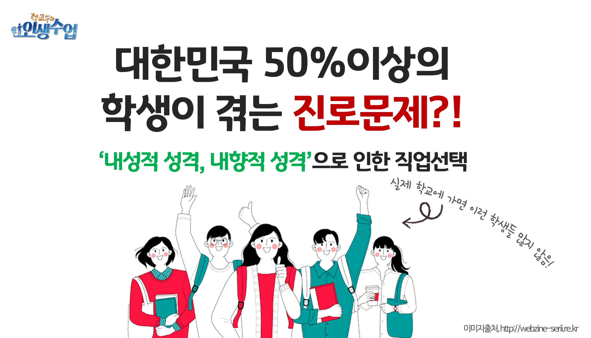 저는 1만여 명의 사람들을 상담해온 실전상담가입니다. 사람의 수만큼이나 다양한 사연들이 있는데요. 하지만 거의 절반에 가까운 사람들이 겪는 공통적인 진로문제가 하나 있습니다. 대인관계 문제인데요. 대개 성격문제인 경우가 많습니다. 그 중에서도 본인이 내성적이어서 다른 사람들과 관계 맺기가 힘들어 어떤 직업을 선택해야 할지 걱정이 된다는 겁니다.