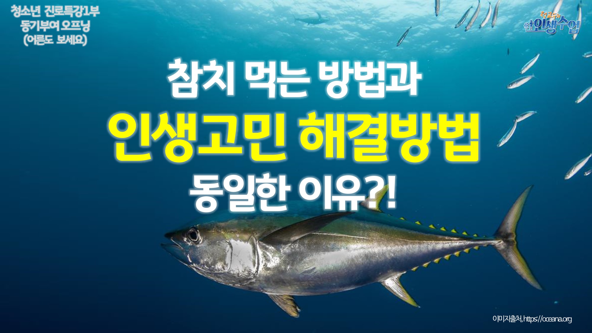 문제는 의외로 그렇게 고민은 하지만 정작 실행은 하지 않는 경우가 많답니다. 그렇게 해서 대학생이 되는 거죠. 그래서 오늘 첫 회에서는 이 커다란 인생고민을 어떻게 풀어나가야 좋을지 커다란 참치를 통해서 이야기를 풀어봅니다.