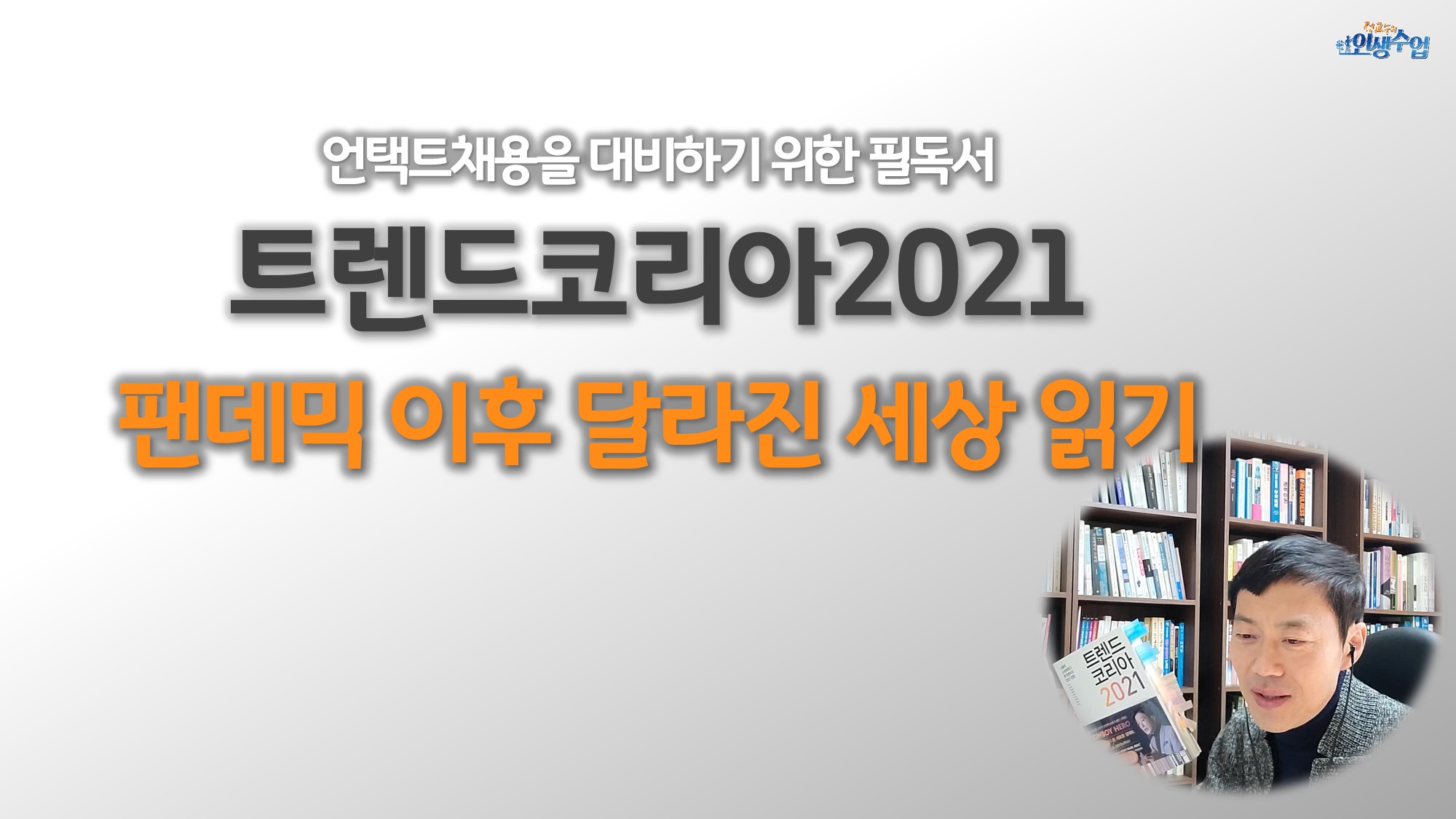 #언택트시대필독서 #대한민국미래읽기 #트렌드코리아2021 #팬데믹이후세상읽기 #언택트채용 #AI채용 #언택트시대 #취준생필독서 #언택트채용전략 #언택트취업전략 #2021채용트렌드 #2021년채용시장 #코로나가바꾼 #일하는방식의변화 #채용트렌드 #취업트렌드 #일자리트렌드 #채용트렌드특강 #취업특강 #언택트특강 #채용트렌드2021 #언택트채용AI취업전략 #커리어코치 #진로수업 #인생공부 #인생수업 #정철상