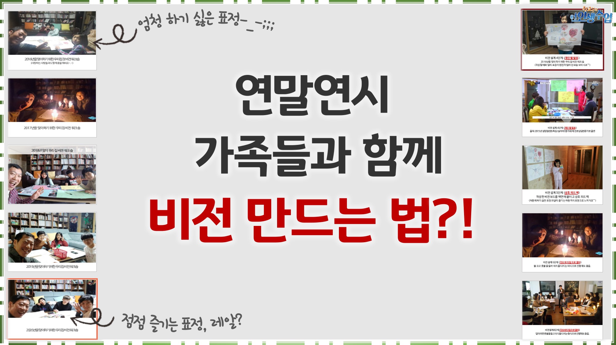 #새해계획세우기 #새해계획세우는법 #비전만드는법 #신년계획작성법 #연말연시 #송구영신 #가족과함께 #새해계획다짐 #신년계획 #새해계획 #신년계획표 #새해계획표 #인생계획표 #인생계획표작성법 #비전워크숍 #동기부여 #진로고민 #취업고민 #인생고민 #직업상담 #젊은이들의무릎팍도사 #커리어코칭 #인생공부 #인생수업 #정교수의인생수업 #커리어코치 #정철상