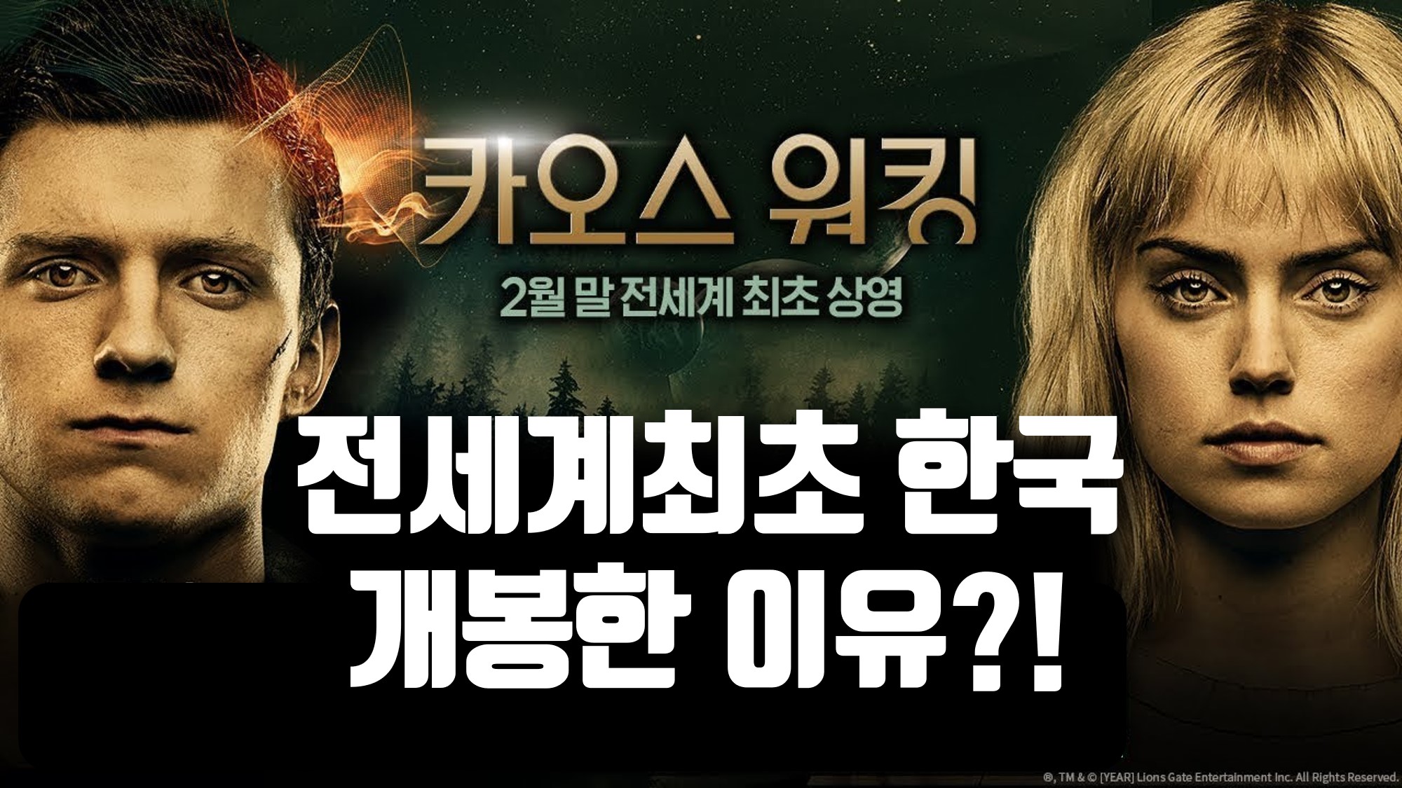 2021년 최고의 블록버스터로 기대되고 있는 영화 《카오스 워킹》이 전세계에 3월 4일 개봉됩니다. 그런데 우리나라만 특별하게 프리미어 위크로 1주일간 먼저 개봉되었는데요. 그게 2월 24일이었답니다. 왜 《카오스 워킹》의 제작진들은 한국에 개봉을 먼저 하게 된 것일까요?