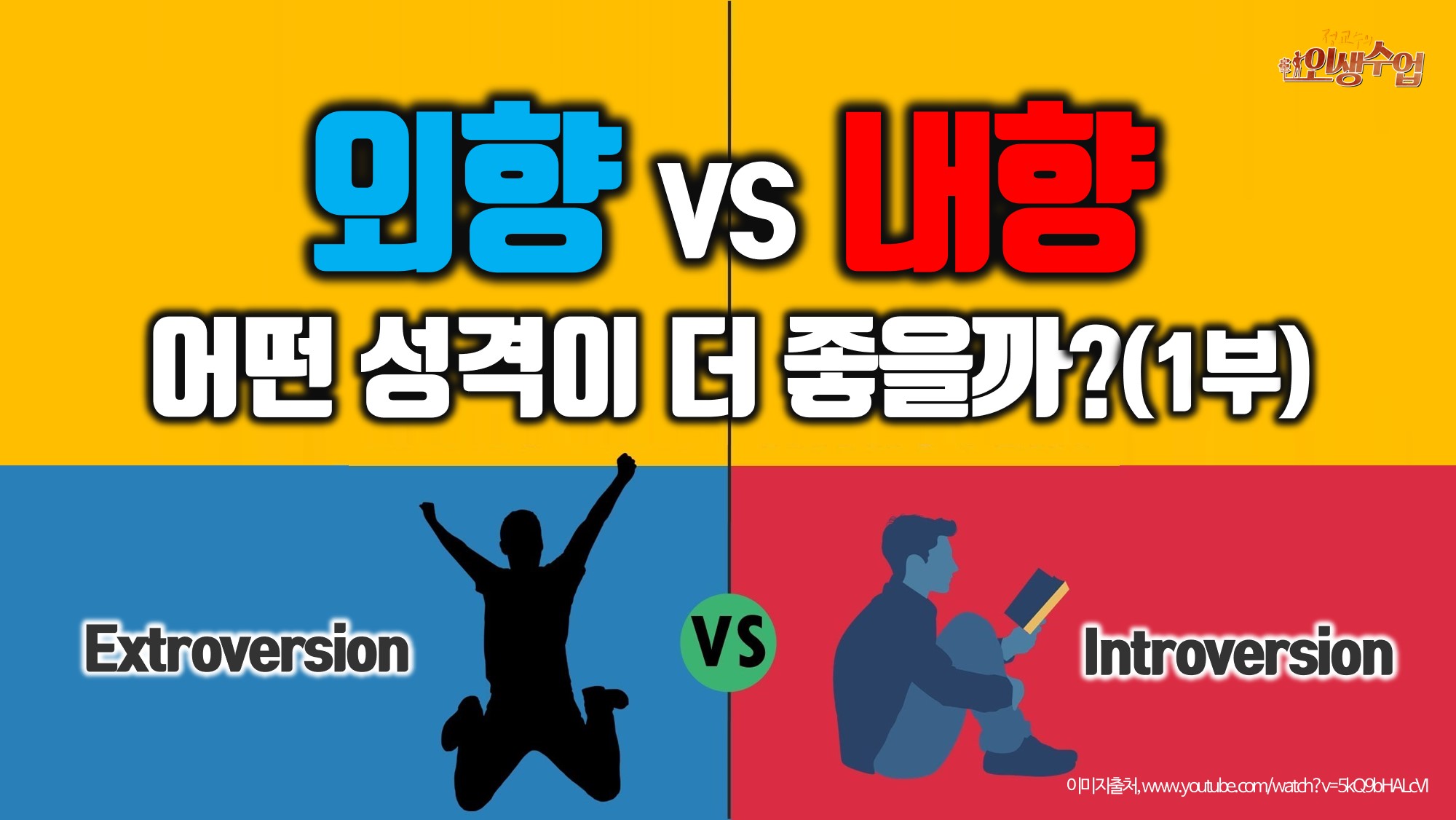 사람의 성격을 한두가지 요인으로 구분하기는 대단히 어려운데요. 그럼에도불구하고 구분해야만 한다면 외향과 내향으로 크게 구분할 수 있는데요. 외향적인 성격과 내향적인 성격인 부분에서는 많은 차이를 보이기 때문에 생각보다 많은 부분에서 우리 삶에 영향력을 끼칩니다. 여러분들은 외향형이 더 좋은 성격이라고 생각하시나요? 아니면 내향형이 더 좋은 성격이라고 생각하시나요? 여러분들의 의견을 자유롭게 남겨주시면 큰 지혜가 되겠습니다.