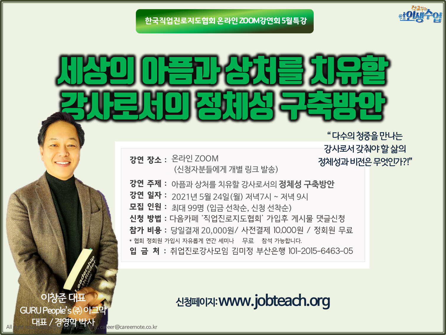 트위터 @careernote, 페이스북 친구+, 인스타그램 친구+브런치 : 구독 유튜브 인생수업 구독+