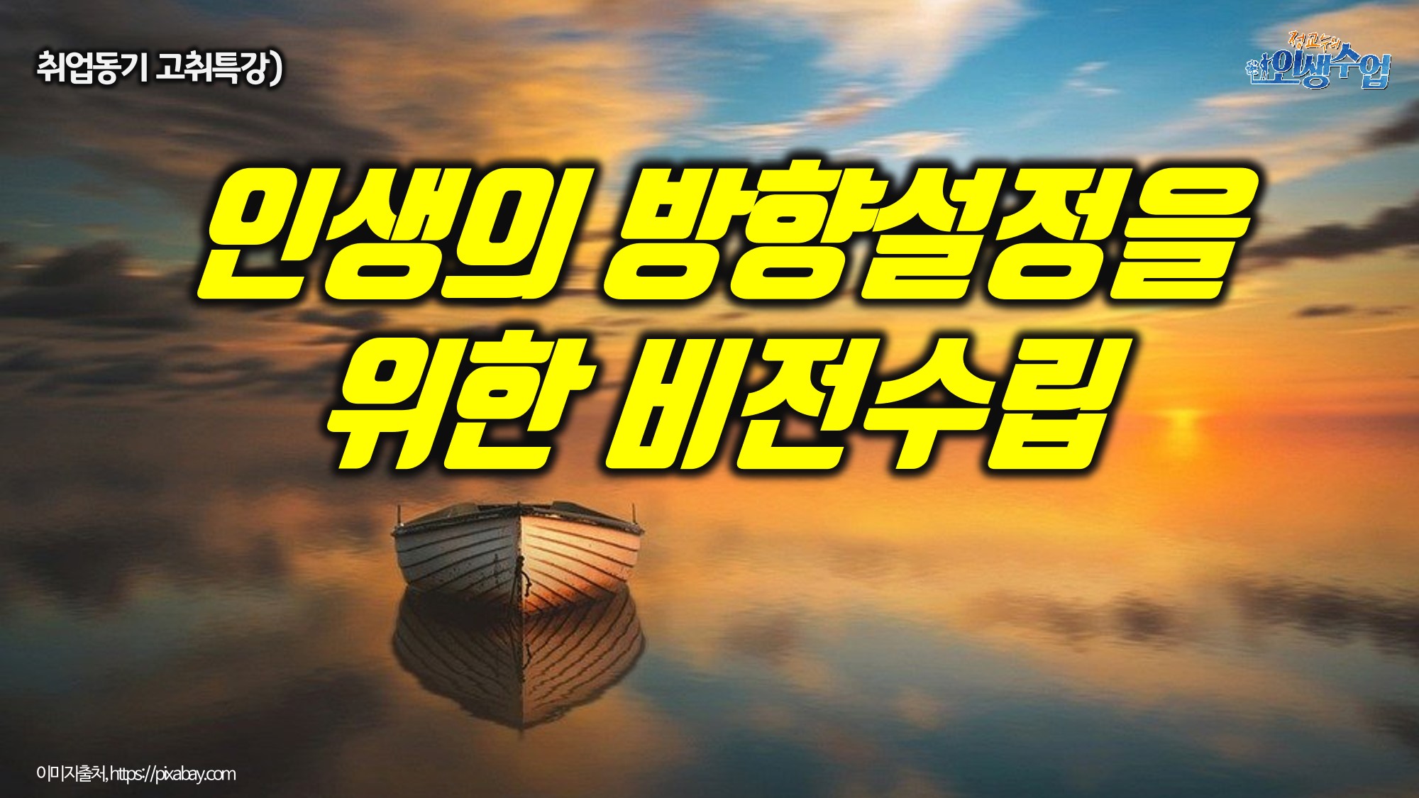 다시 위기상황에 내몰리지 않으려면 미리 대비해야만 합니다. 그러기 위해서는 조금 더 멀리 내다봐야 합니다. 오늘은 왜 취업전선에서도 비전수립부터 설정하는 것이 중요한지에 대한 이야기를 전해드리고자 합니다. 취업동기를 고취하고 인생의 동기를 부여하는 의미 있는 시간되리라 믿습니다. 끝까지 시청하시길 권합니다.