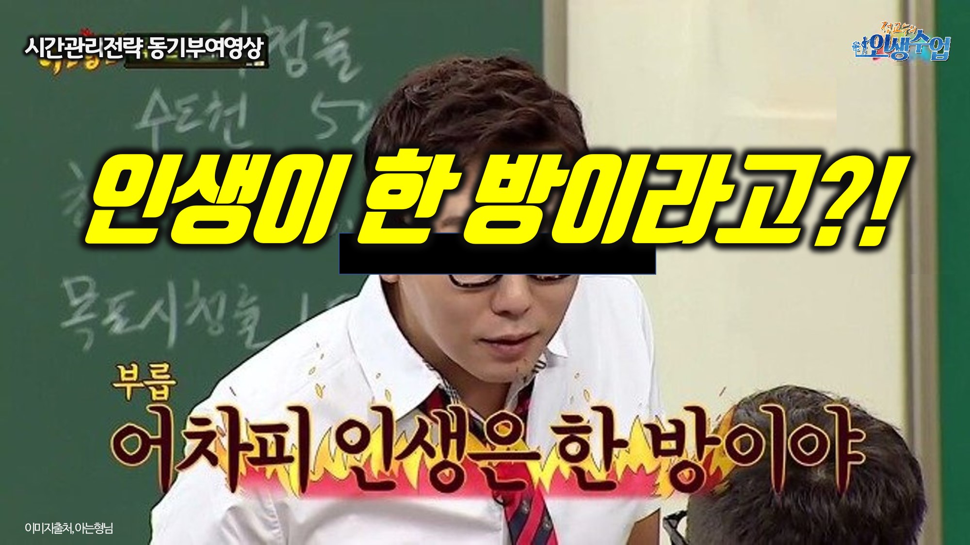 꽤 많은 사람들이 인생 한 방을 노립니다. 사실 저 역시도 젊은 날부터 인생역전을 꿈꾸며 한 방을 노리지 않았을까 반성해봅니다. 그런 차원에서 대학생들을 대상으로 한 시간관리전략 특강을 하면서 동기부여 차원에서 인생 한 방에 대한 제 생각을 정리해서 말씀드렸는데요.