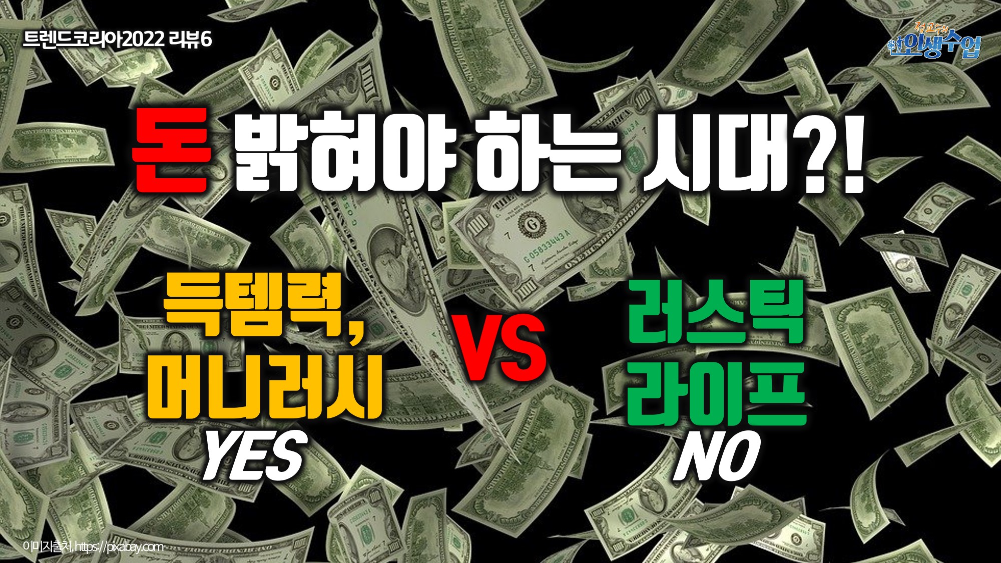 도서《트렌드코리아2022》리뷰6, 이제는 돈 밝혀야 하는 시대?! (머니러시 & 득템력 트렌드 VS 러스틱라이프)