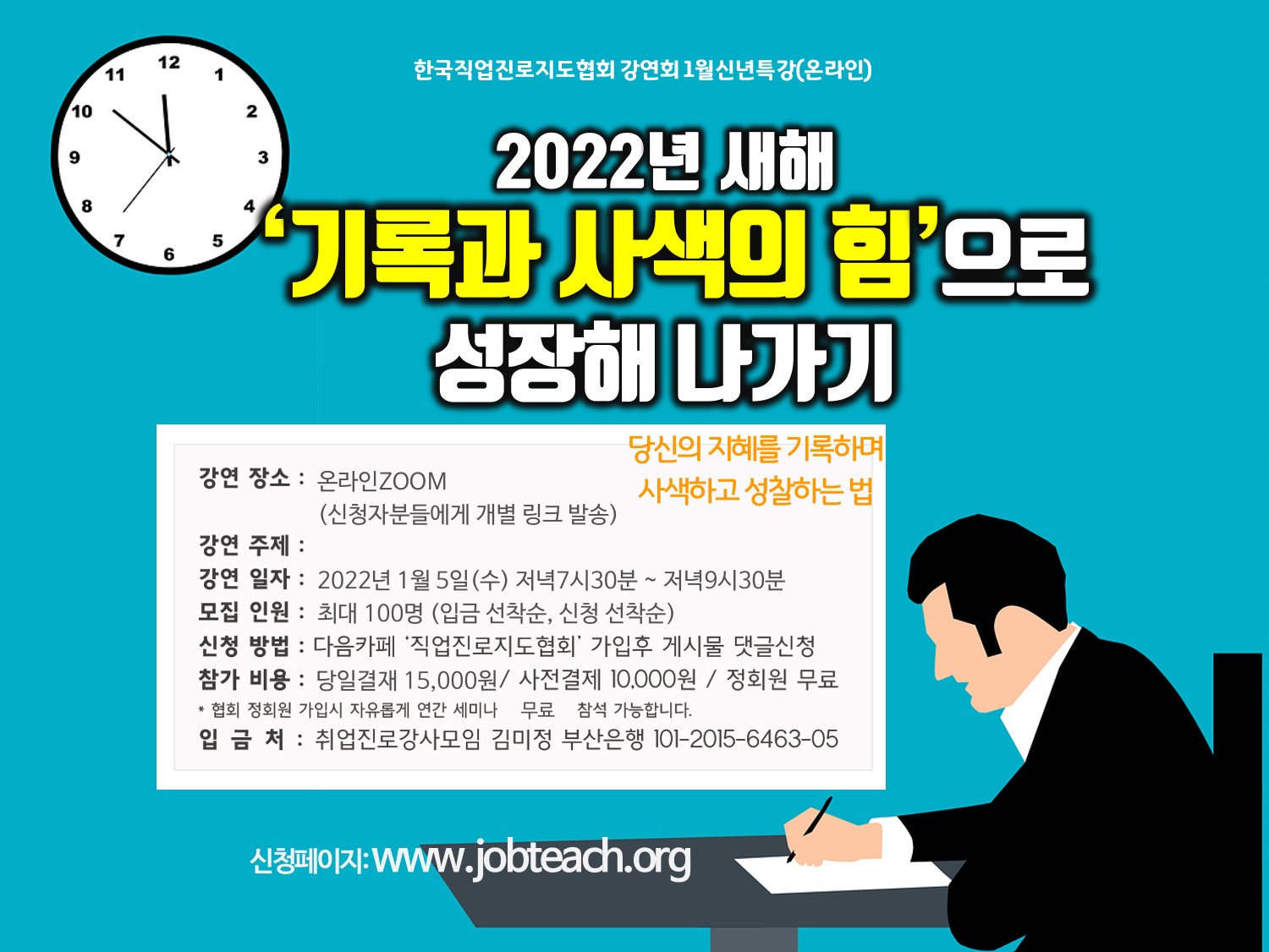 2022년 새해 첫 특강을 마련했습니다. 청년들의 실질적인 삶을 바꾸기 위해 진로교육에 힘써온 윤성화 소장님을 모셨습니다. 윤소장님의 다이어리를 보면 놀라운데요. 미팅이나 강연이나 설교나 자신의 생각을 글로 표현해내는 힘 때문입니다. 그래서 폭넓은 분야에 이르는 주제의 강연과 20여개의 전혀 달라 보이는 사업을 펼쳤습니다. 그런 노하우를 바탕으로 자기계발 다이어리까지 발간해 일반 대중들까지 손쉽게 기록을 해나갈 수 있도록 하셨는데요. 새해 첫 다짐을 하기에 가장 적격인 분이라 생각되어 1월 강사님으로 어렵게 모시게 되었답니다.