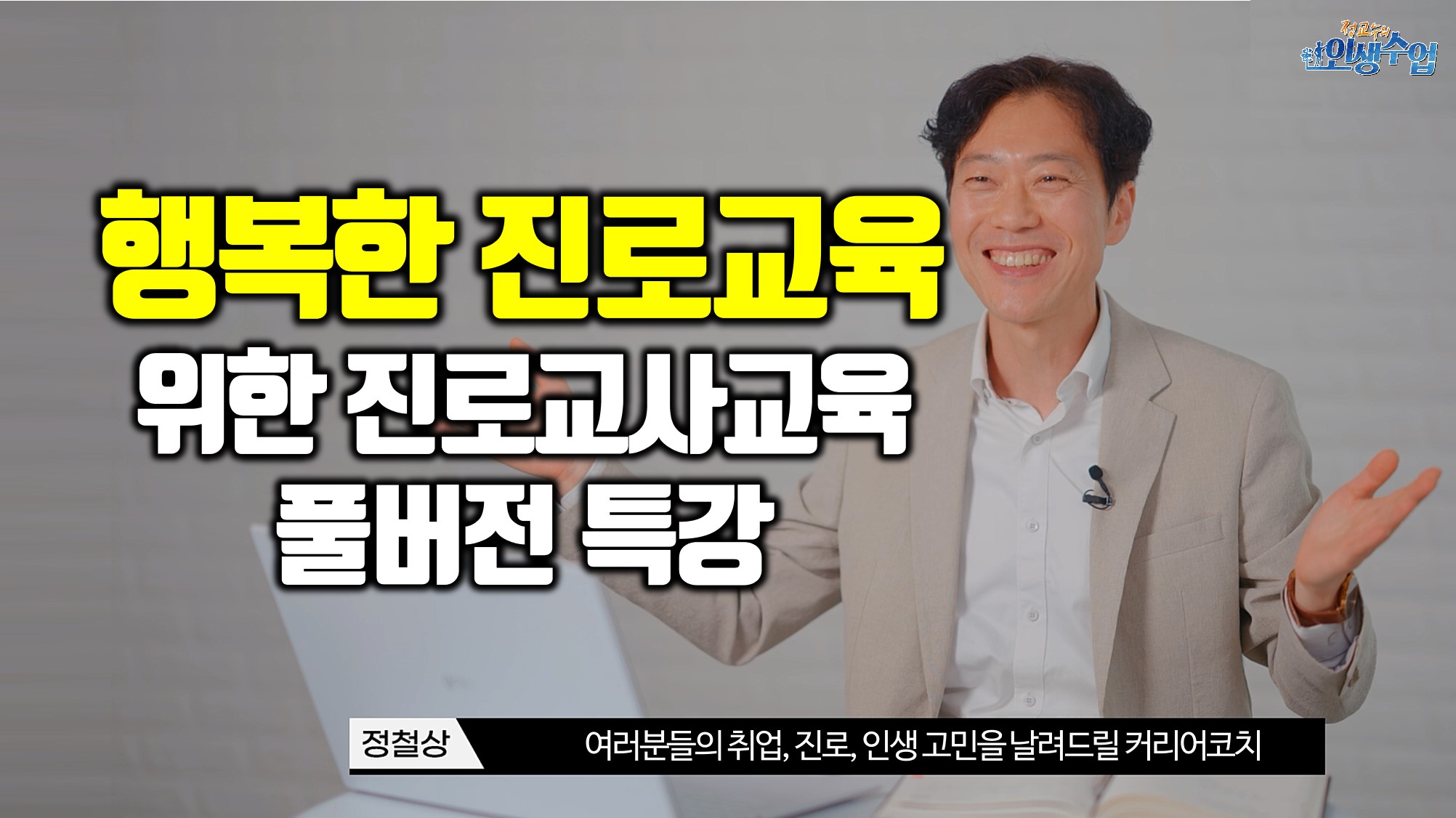 오늘은 한 아이가 성장하는데 가장 중요한 역할을 하는 교사를 위한 교육입니다. 중고등학교에서 학생들의 진로지도를 하시는 선생님들을 대상으로 한 특강을 한 내용인데요. 관련 분야에 계신 분들을 위해 풀버전으로 공개하는 영상이지만 진로에 관심 있으신 분들이라면 누구에게나 도움이 되실 거라 믿습니다.