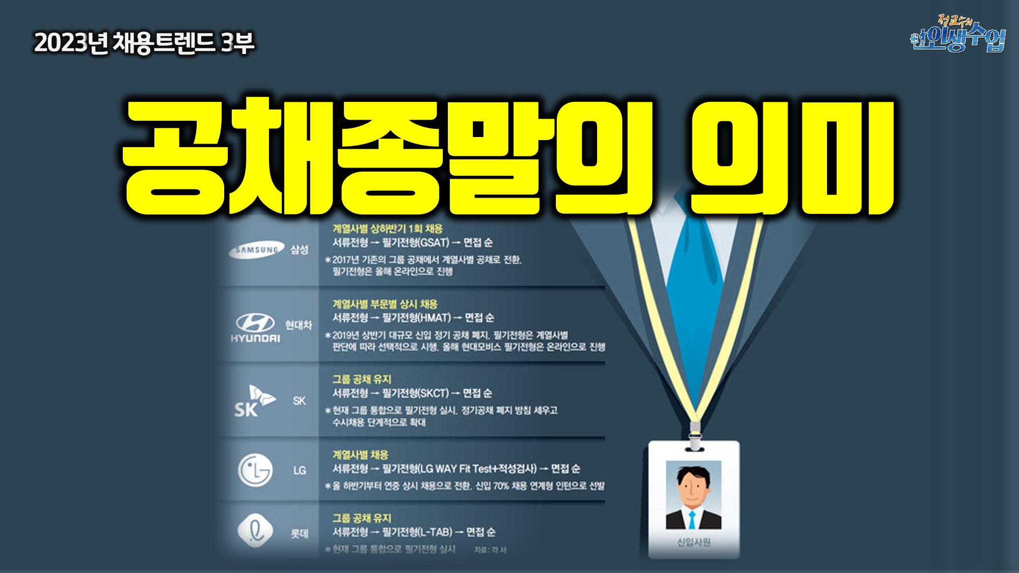 #공채종말 #공개채용 #공채의종말 #블라인드채용 #직무능력중심채용 #변화된기업채용 #2023년채용트렌드 #채용트렌드 #최신채용트렌드 #채용트렌드2023 #채용문화 #채용담당자교육 #인사담당자교육 #경영자교육 #HR트렌드 #채용방법 #어떻게채용할것인가 #일자리문화 #일자리풍토 #채용특강 #채용정보 #채용교육 #인재관리 #취업교육 #추천강사 #취업진로지도 #취업진로지도전문가 #커리어코치 #정철상