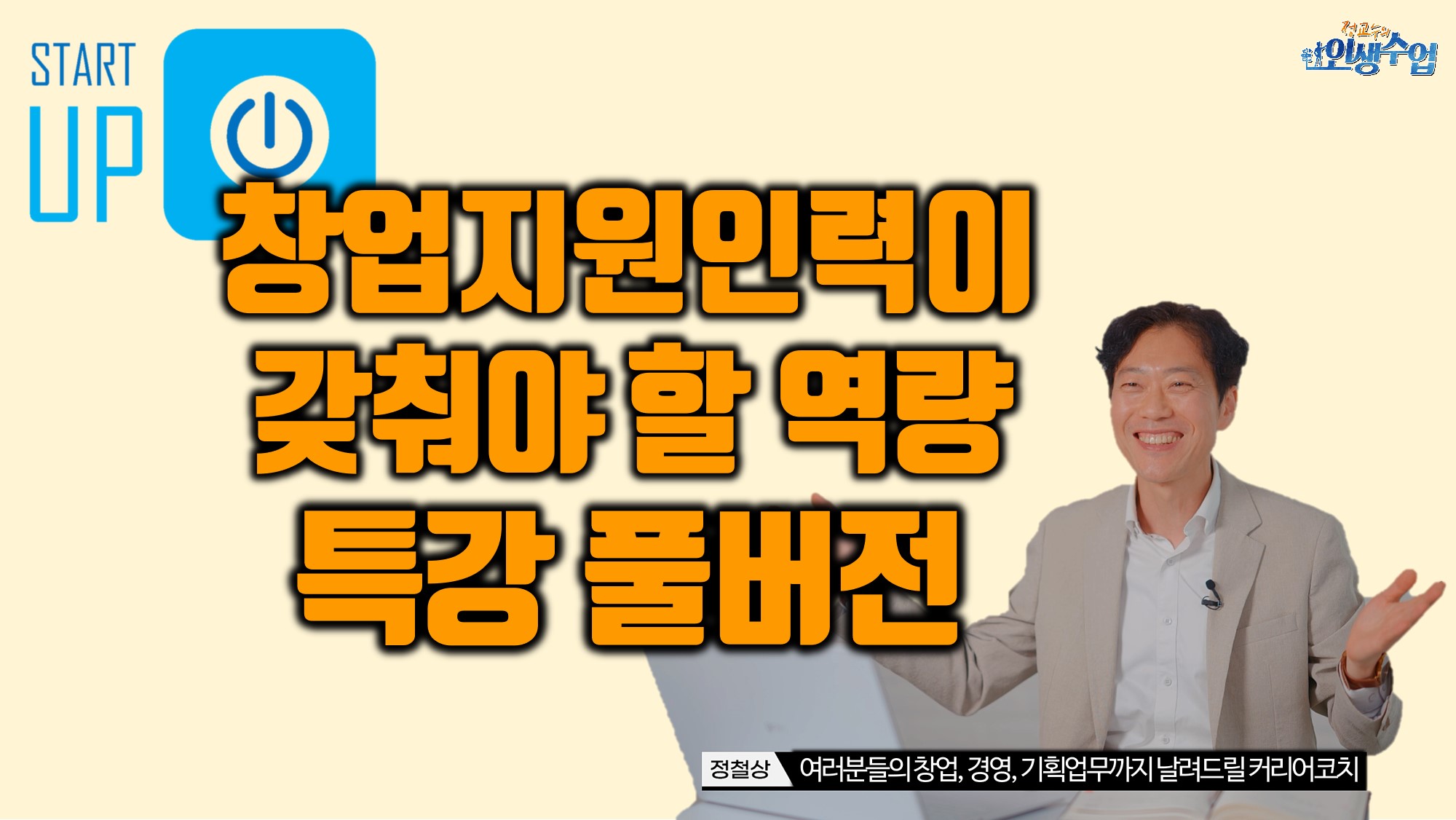 오늘은 창업지원업무를 맡고 있는 분들을 위해 필요한 역량을 풀버전 특강으로 공유해봅니다. 풀버전 영상은 언제든 비공개로 전환될 수 있음을 너그럽게 양해 부탁드립니다.