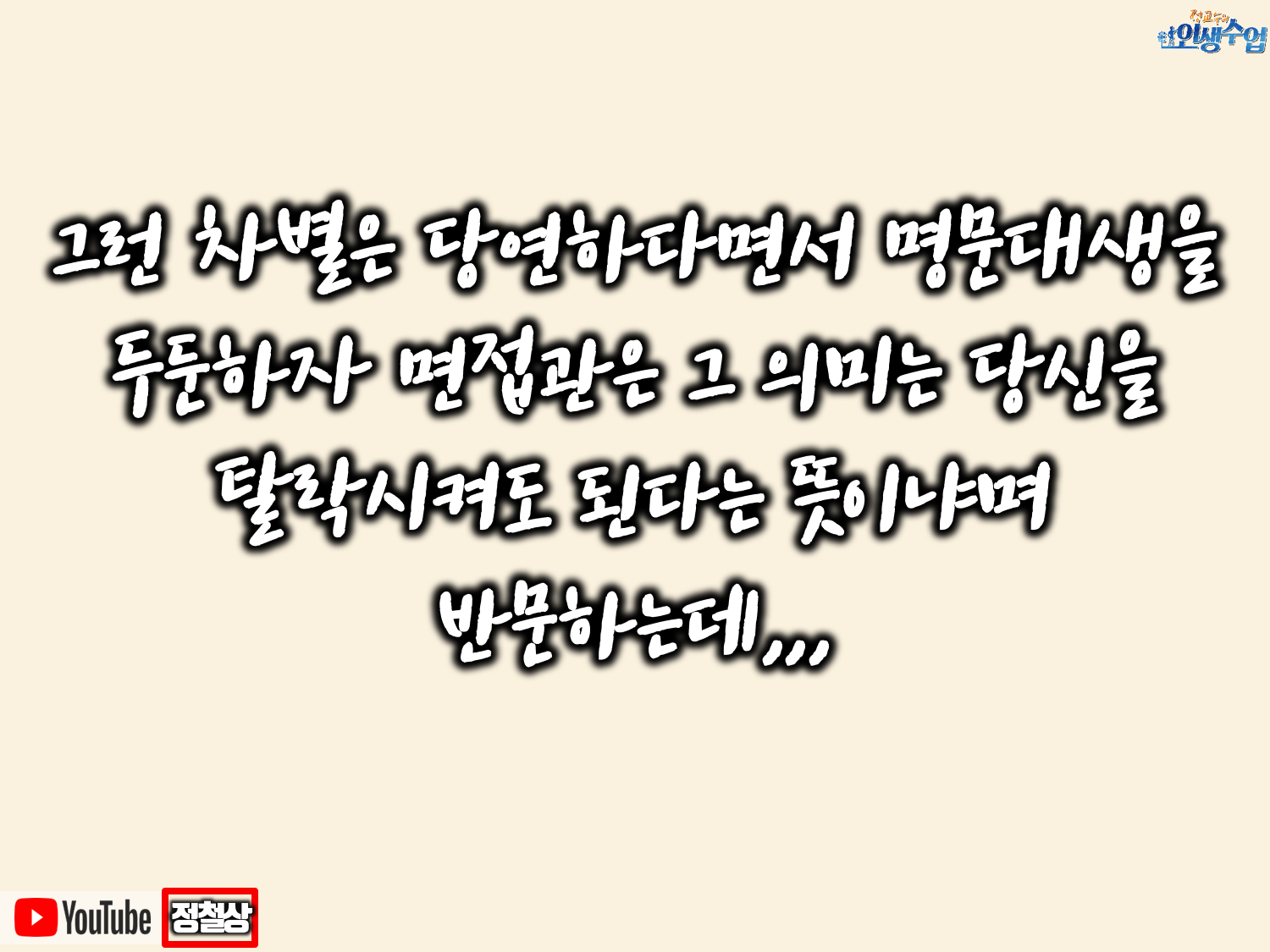#취업스토리 #취준생스토리 #지방대생의취업 #제갈현열 #김도윤 #김도윤작가 #김작가tv #지금처럼살거나지금부터살거나 #날개가없다그래서뛰는거다 #취업고민 #취업이야기 #취업면접 #면접답변 #대기업입사전략 #취업롤모델 #취업전문가 #동기부여가 #동기부여강연 #자기계발 #긍정 #좋은글 #대학생교육 #취업교육 #취업진로지도전문가 #추천강사 #인생수업 #정교수의인생수업 #커리어코치 #정철상