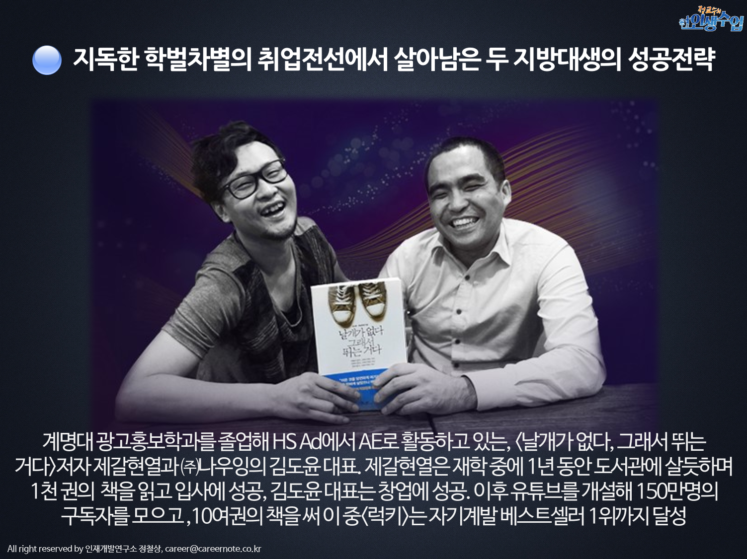 트위터 @careernote, 페이스북 친구+, 인스타그램 친구+브런치 : 구독 유튜브 인생수업 구독+