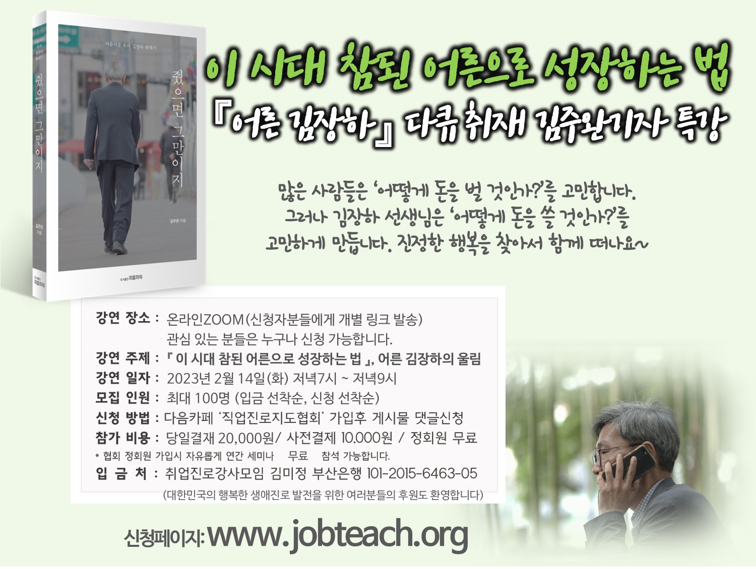 #난방비폭탄 #인생고민 #국민고민 #국민고충 #취업고민 #인생이야기 #김장하 #어른김장하 #아름다운부자 #김주완 #김주완기자 #특강 #교육 #커리어전문가 #취업전문가 #진로전문가 #동기부여가 #동기부여강연 #자기계발 #긍정 #좋은글 #좋은생각 #청년교육 #취업교육 #취업진로지도전문가 #추천강사 #인생수업 #정교수의인생수업 #커리어코치 #정철상