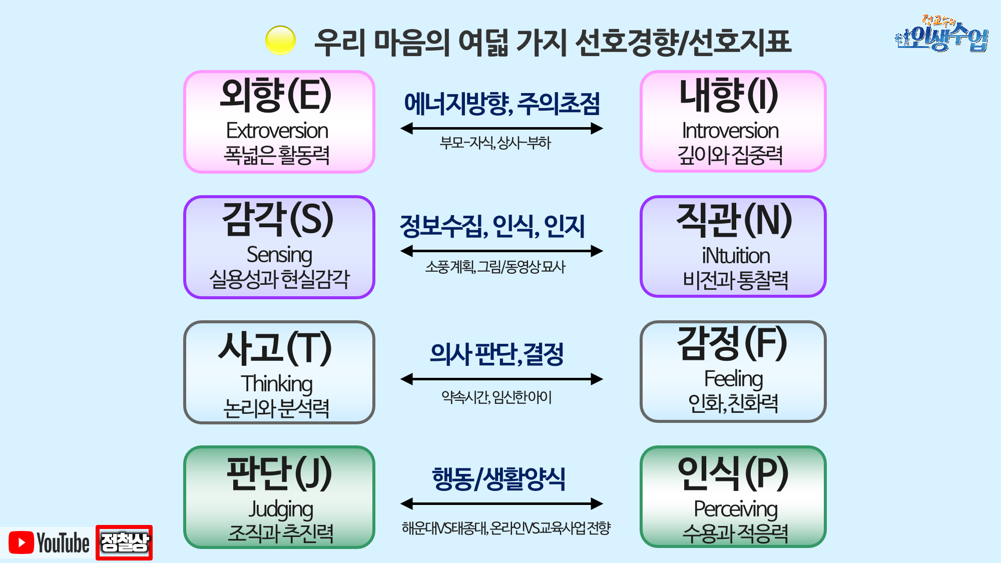 대인관계7부) MBTI 8가지 선호경향 특징과 외향인 VS 내향인 성공사례(&의사소통방식의 차이)