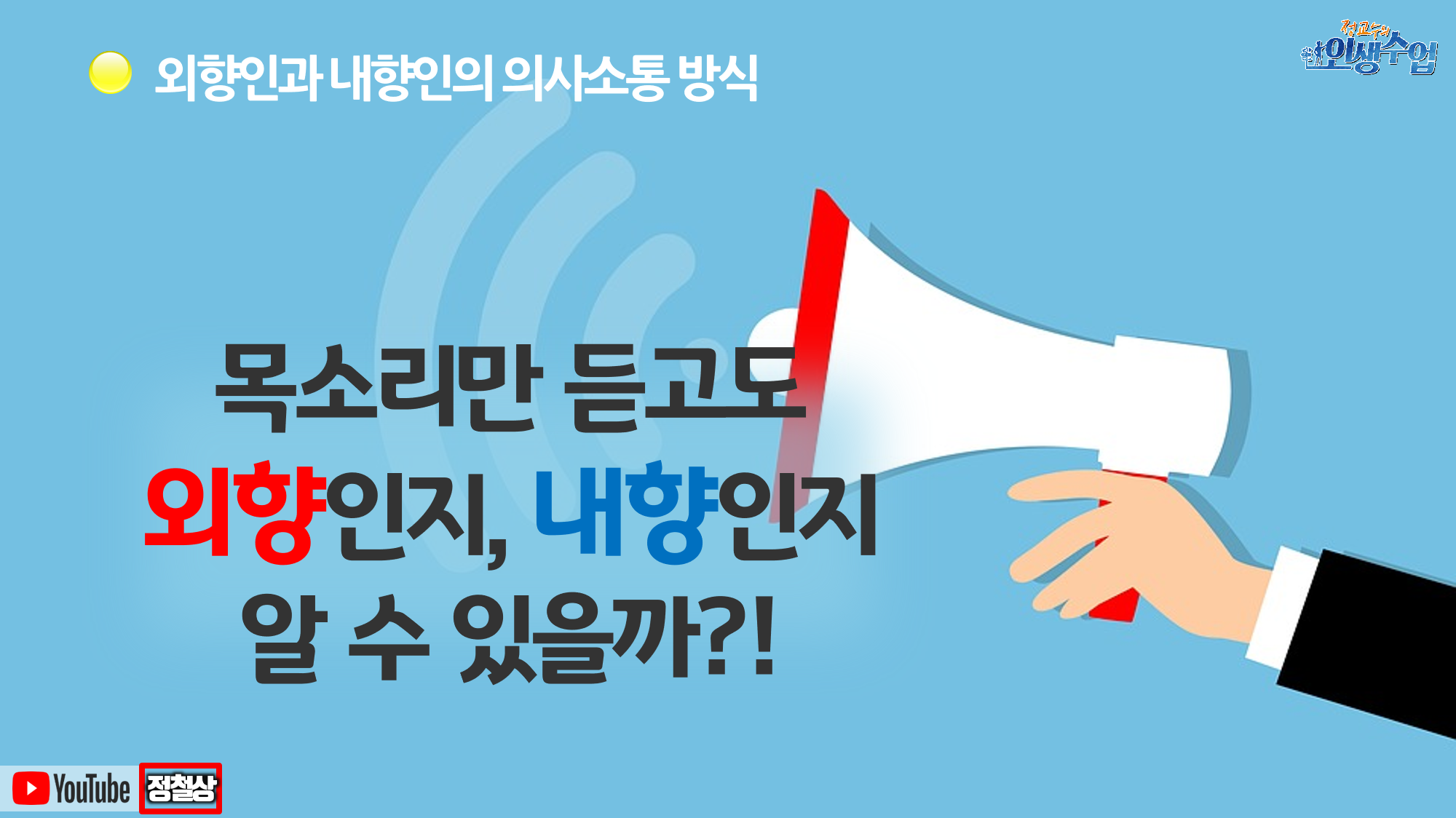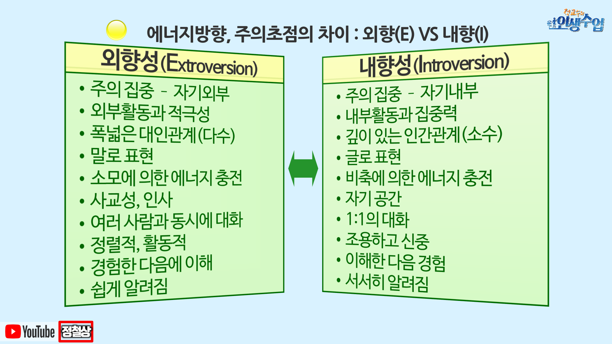 #외향적성격 #내향적성격 #외향내향 #외향과내향차이 #MBTI외향 #MBTI내향 #외향적인사람 #내성적인사람 #외향인내향인 #외향형내향형 #외향적 #외향VS내향 #외향(E) #내향(I) #외향과소통하는법 #내향과소통하는법 #의사소통방식차이 #MBTI선호경향 #MBTI원리 #MBTI선호지표 #MBTI공부 #MBTI소통 #MBTI이론 #MBTI대인관계 #MBTI인간관계 #MBTI의사소통 #MBTI강사 #MBTI전문가 #커리어코치 #정철상