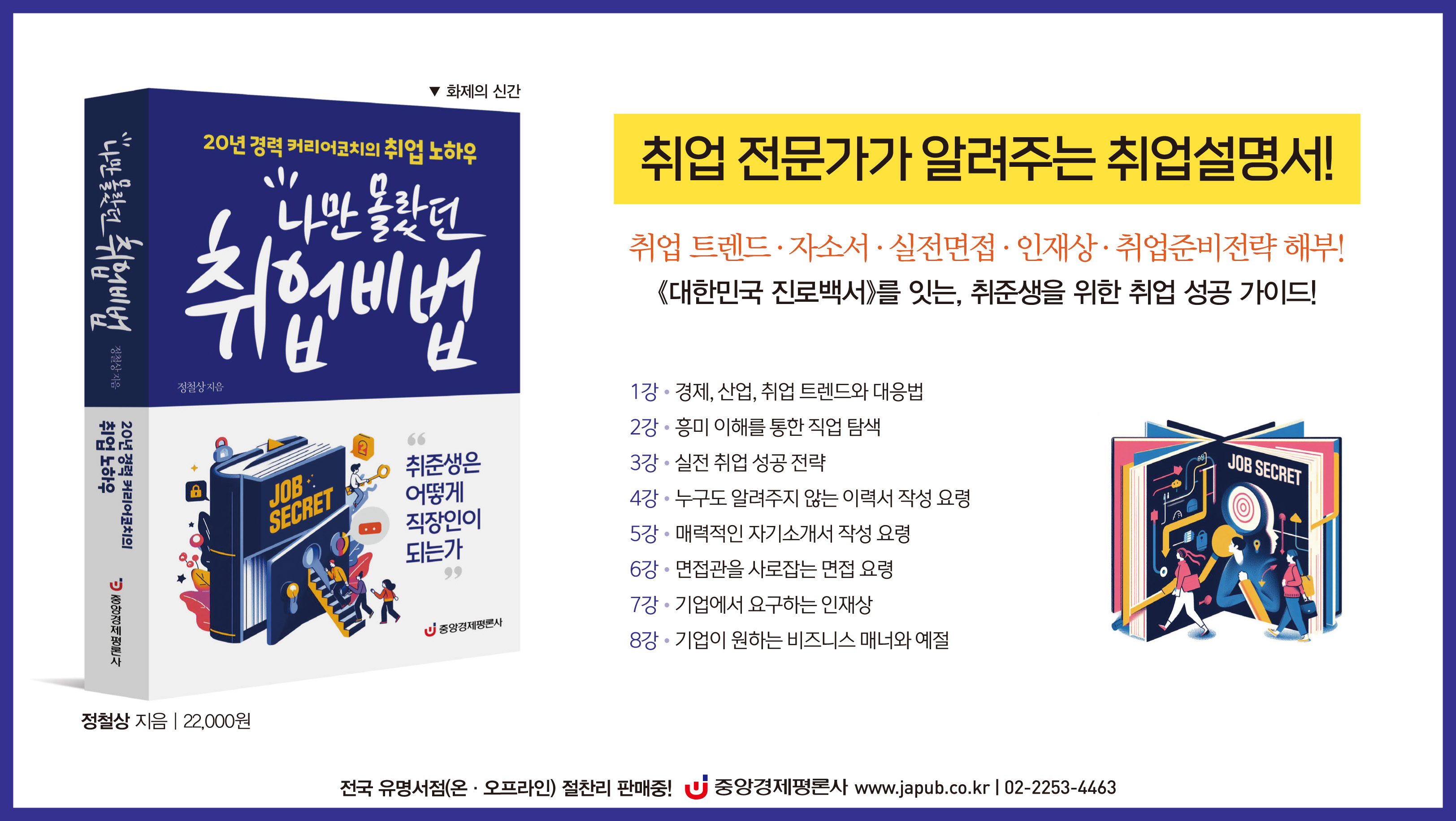 도서 《나만 몰랐던 취업비법》은 대기업, 공기업 채용 경험부터 대학강단과 오랫동안의 강의와 상담경험을 바탕으로 해 제 20년간의 노하우를 꾹~꾹~눌러 담은 책입니다. 취업고민을 하고 있는 청년들을 위해서 집필한 서적이라 주변청년들에게 추천 부탁드립니다.