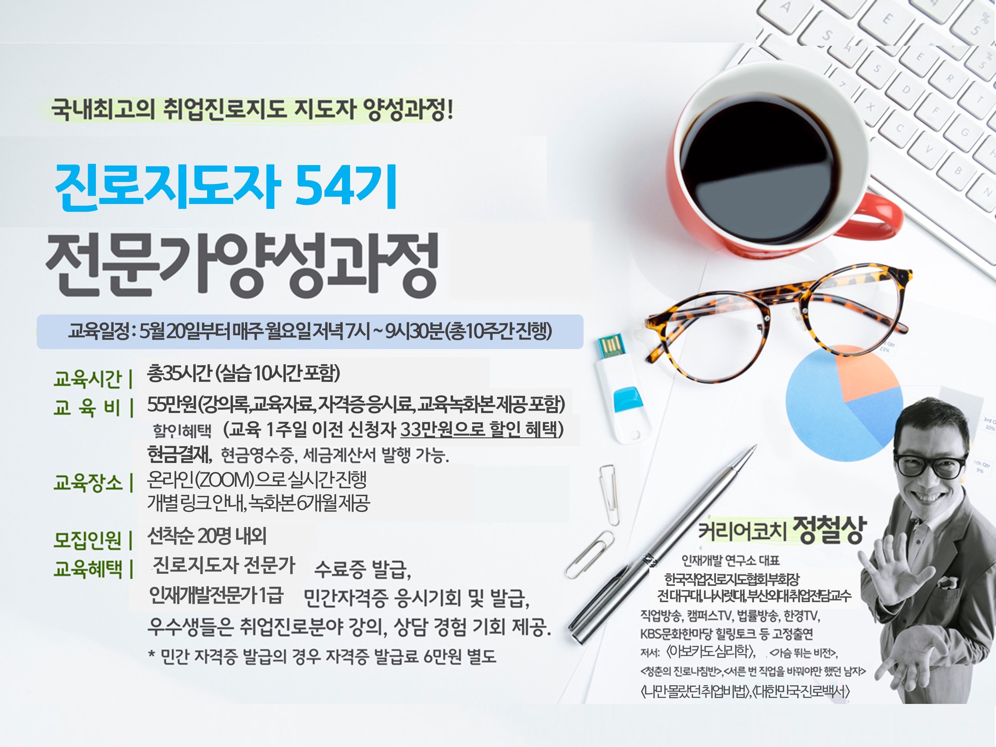 | 취업지도자 양성 전문교육 53기 온라인 교육과정 안내 (2) | 2024.04.23 |