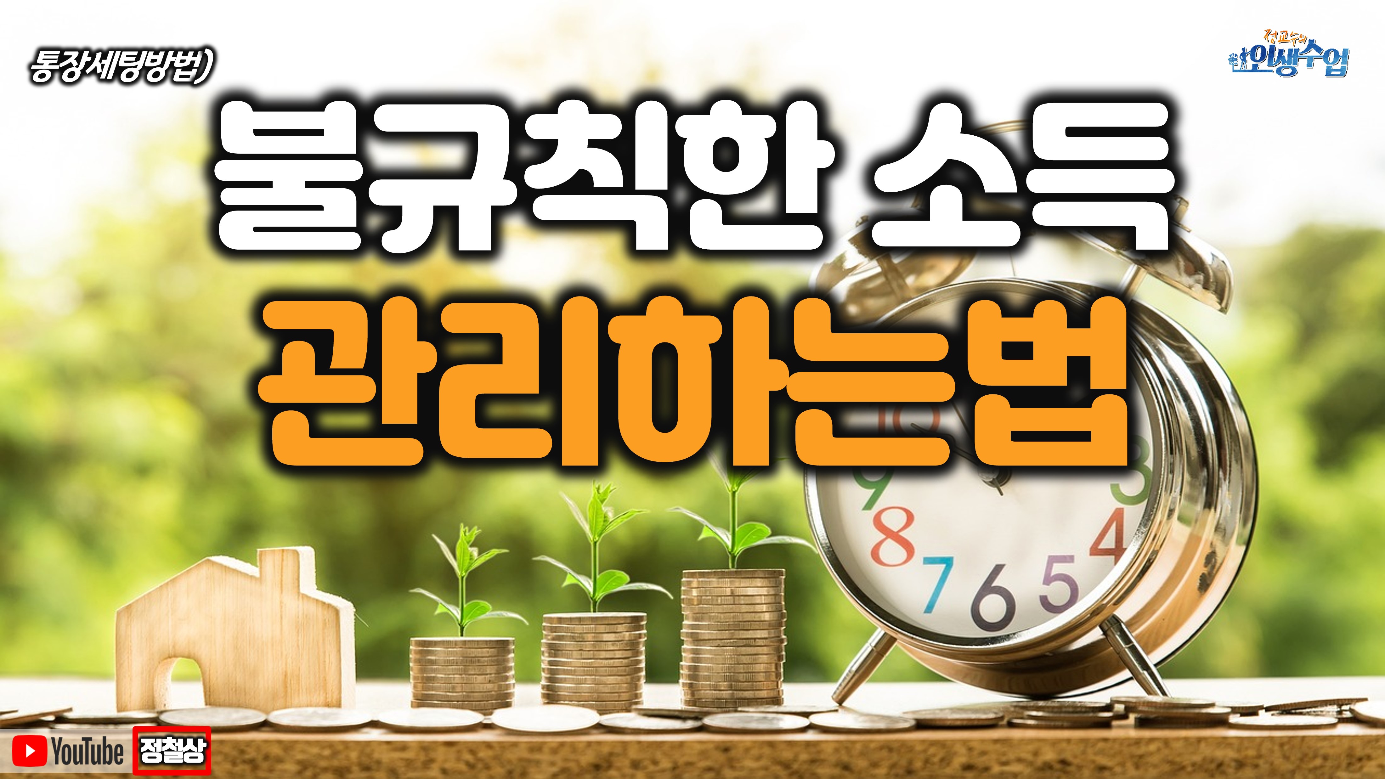 오늘은 1부로 불규칙한 소득을 어떻게 관리하면 좋을지에 대한 방법으로 통장세팅 노하우를 전하오니 끝까지 시청하시길 권합니다.