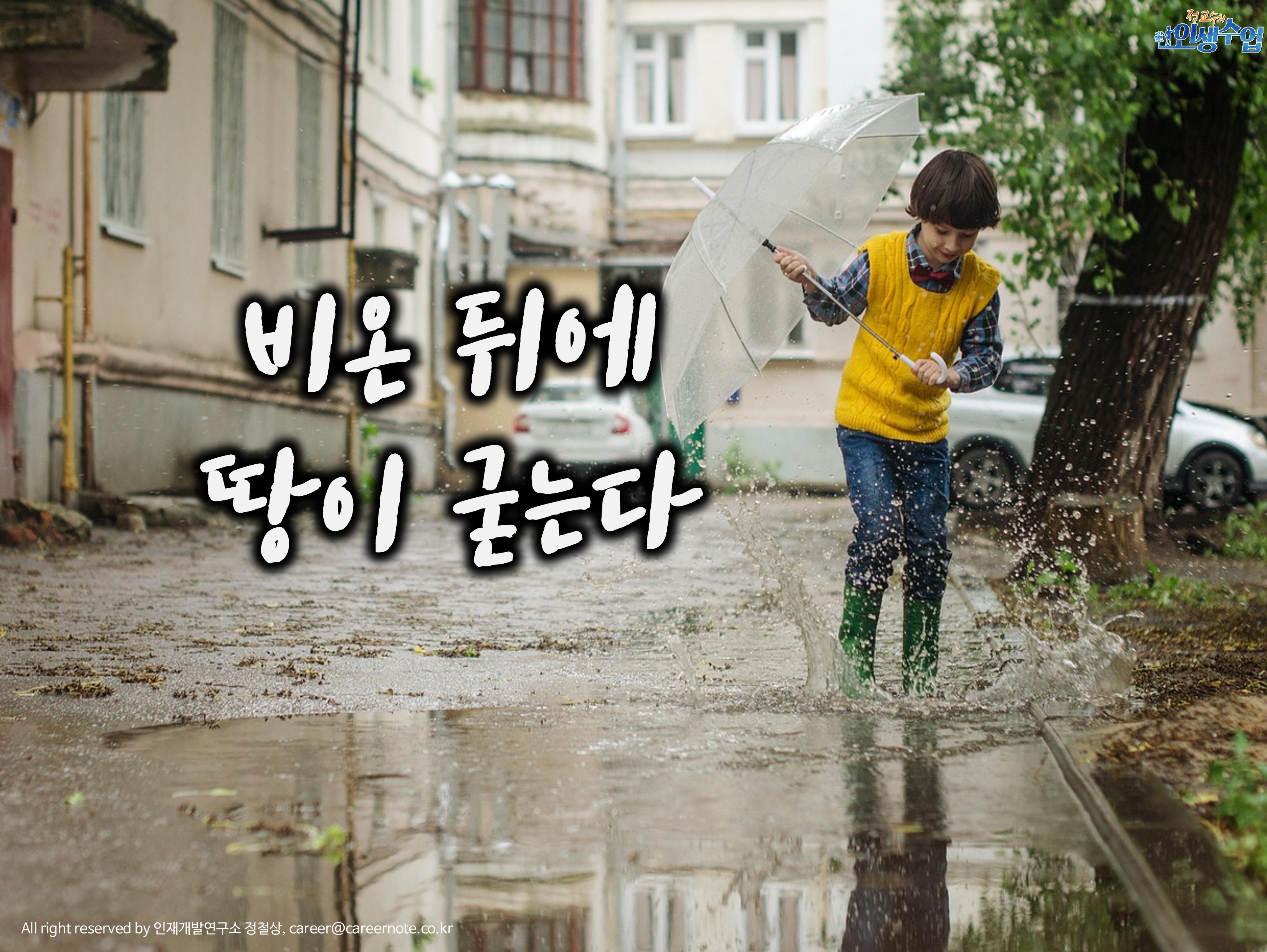 어린 시절의 저는 ‘비온 뒤에 땅이 굳는다’는 속담을 마음속으로 많이 외쳤습니다. 그런데 비온 뒤에 땅이 굳기는커녕 더 질퍽거림이 있더라고요. 중학교 때까지 가난한 비포장도로 마을에서 살았거든요. 그래도 그런 긍정적 믿음을 가지고 20대까지 살았는데요. 나이 서른이 넘어도 인생이 풀리지 않고 여전히 진흙탕 뻘밭에 빠져 있더라고요.