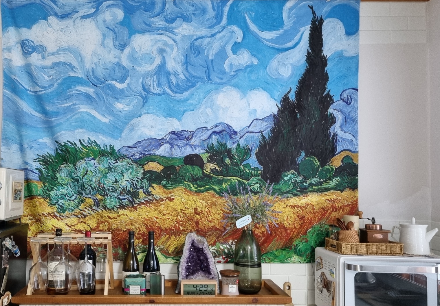 실제로 이 작품이후 제가 좋아하는 《별이 빛나는 밤》을 그렸고 《올리브 나무 숲》과 같은 걸작이 이어서 나오게 됩니다. 솔직히 말해 저는 이 작품 이전에 그렸던 《론강의 별이 빛나는 밤》을 더 좋아하긴 합니다. 고흐가 자신의 귀를 자르고 론강에서 별빛 터지는 소리가 들린다고 테오에게 보낸 편지에 깊이 감동한 부분이 있기 때문이기도 합니다. 그래서 어떤 그림을 선택 할까 고민하다가 《론강의 별이 빛나는 밤》은 낮에는 자칫 어두워 보일 수 있어 걸려진 작품을 선택했답니다. 이 그림은 나중에 구입해서 2층에 걸어둬야겠다고 생각했는데요. 아내한테 말했더니 너무 여기저기 걸어놓기만 해서는 안 된다며 반대해서 등 돌려 누웠습니다.ㅋ