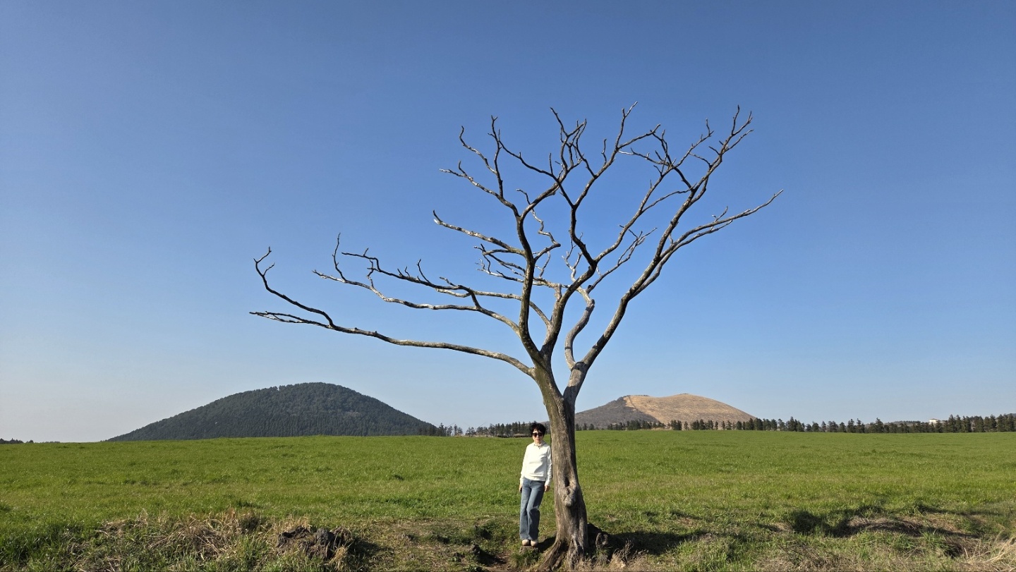 ~ 새별오름 나홀로나무 (푸르른 초원에 앙상하게 홀로 서 있는 나무가 독특한 풍광을 연출합니다)