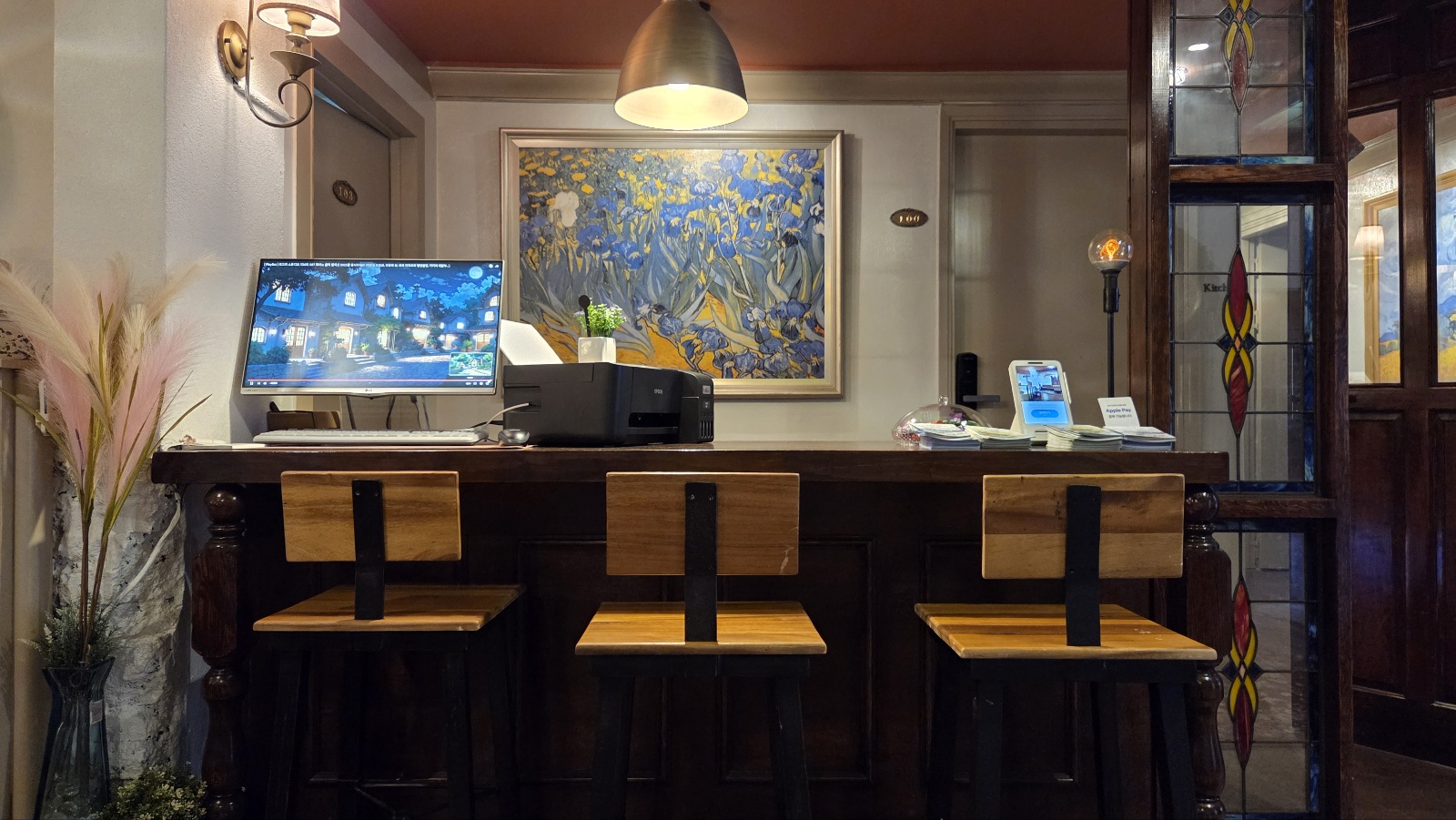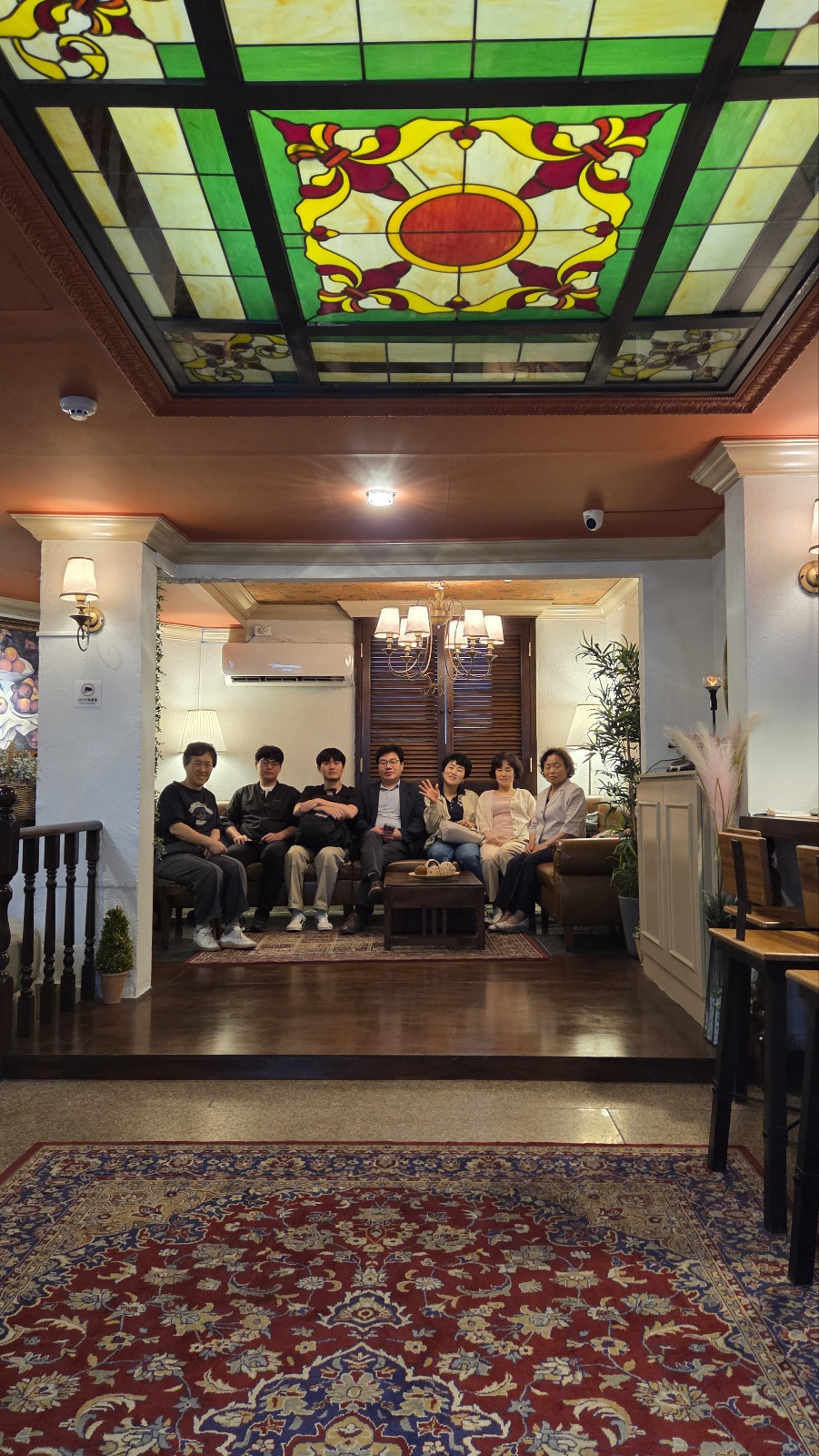 건물 안으로 들어서면 마치 유럽의 작은 부티크 호텔에 들어선 듯한 착각이 듭니다. 입구부터 스테인드글라스 천장에 앤티크한 조명과 가죽 소파, 빈티지 러그까지 하나하나가 감성 그 자체에요.