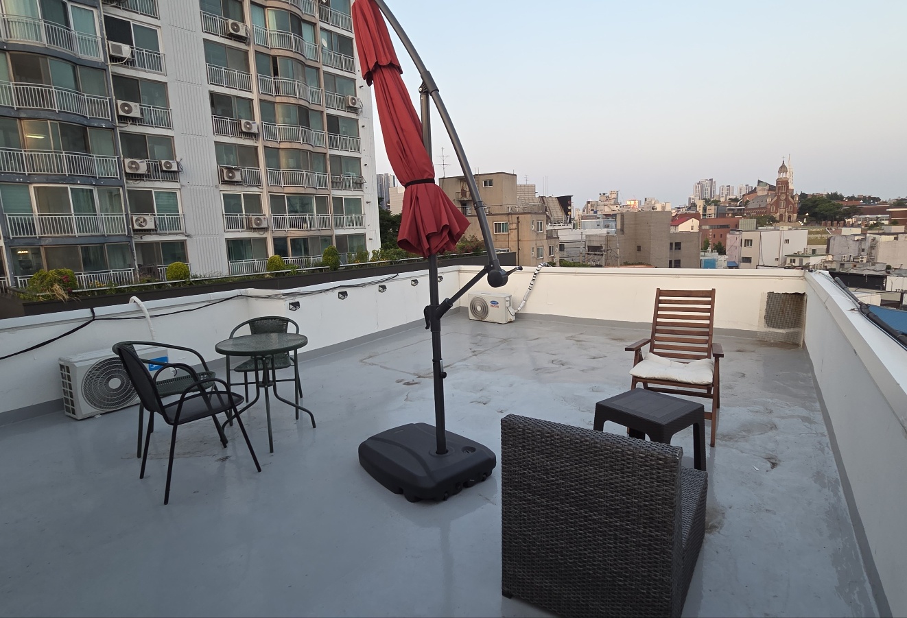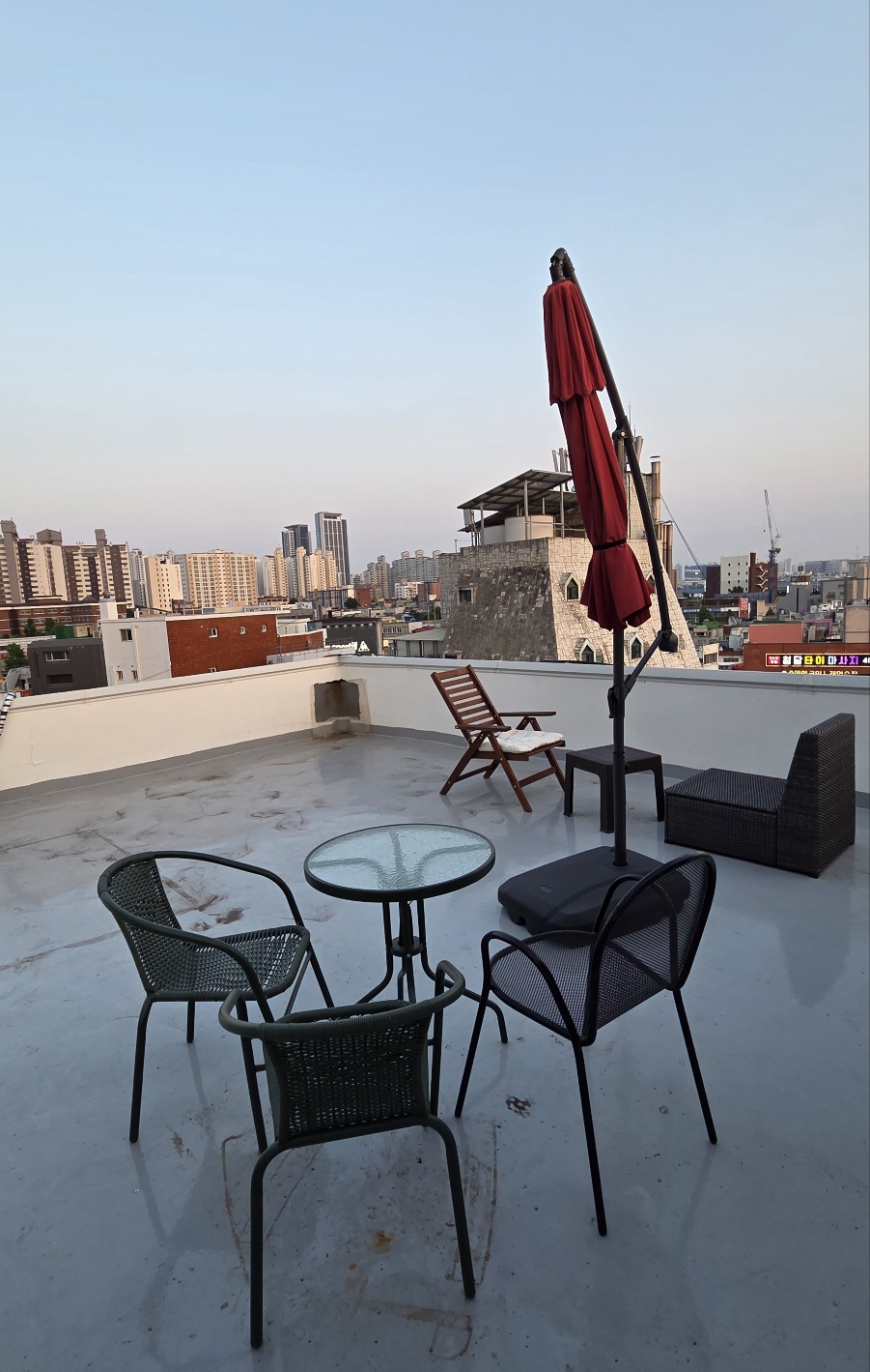 5층 공용주방에서는 10여 명까지 조촐한 모임도 가능해요. 옥상 테라스는 조용히 사용만 잘하면 파티 분위기 내는 것도 문제 없습니다. 대낮의 옥상뷰도 좋은데요. 야경도 너무 예쁘니까 꼭 올라가봐야겠죠. 다만 주변에 거주하시는 분들이 계셔서 너무 시끄럽게 떠들면 민원 들어올 수 있다고 하니까요. 주변을 배려하는 정도로 조용히 즐기면 좋겠지요. 물론 뒷정리도 깔끔하게 처리하기 정도의 매너와 센스는 장착해야겠죠.