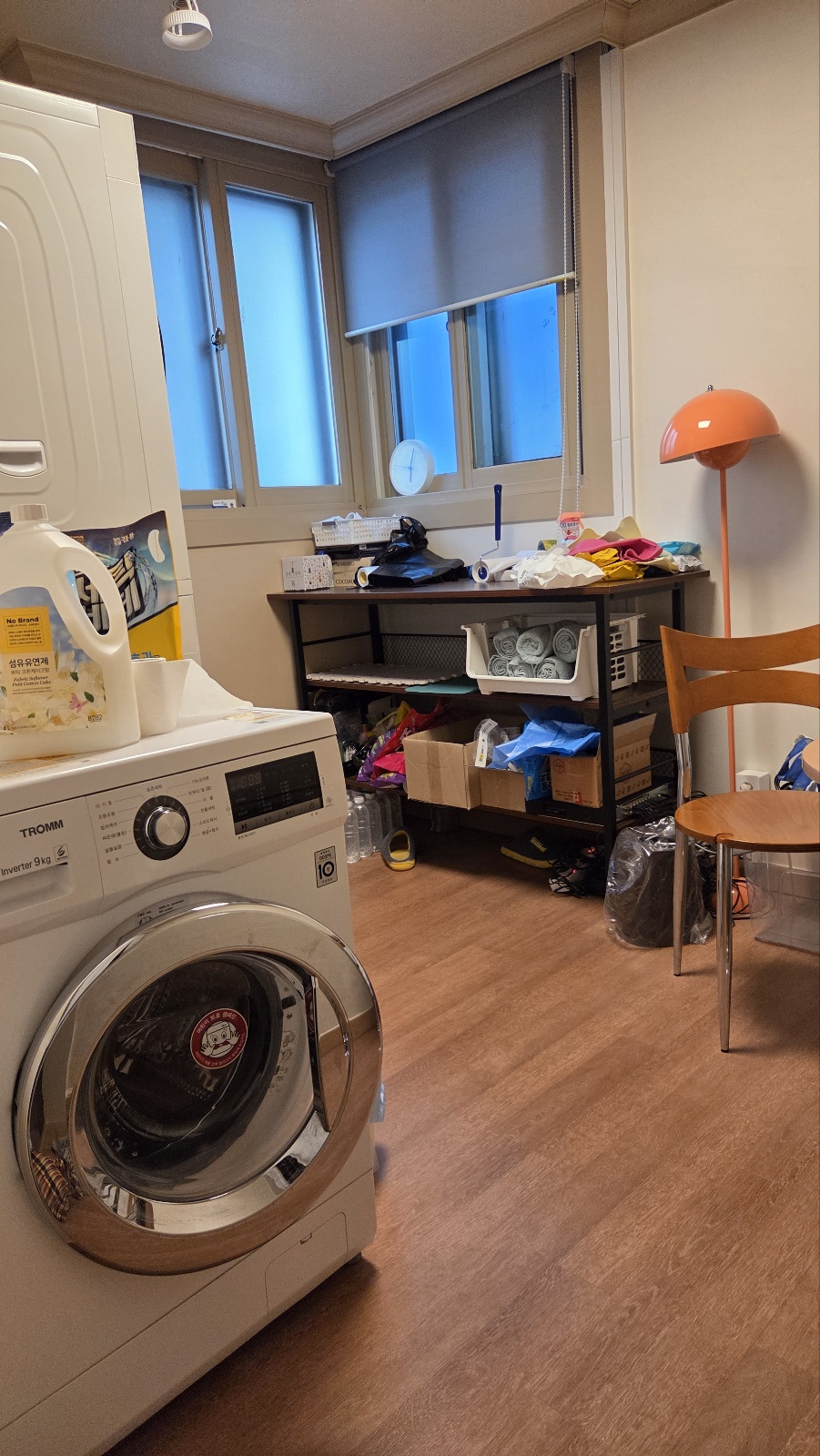1층부터 5층까지 각 층마다 간단한 조리가 가능한 공용주방이 있고, 세탁기도 갖춰져 있어요.