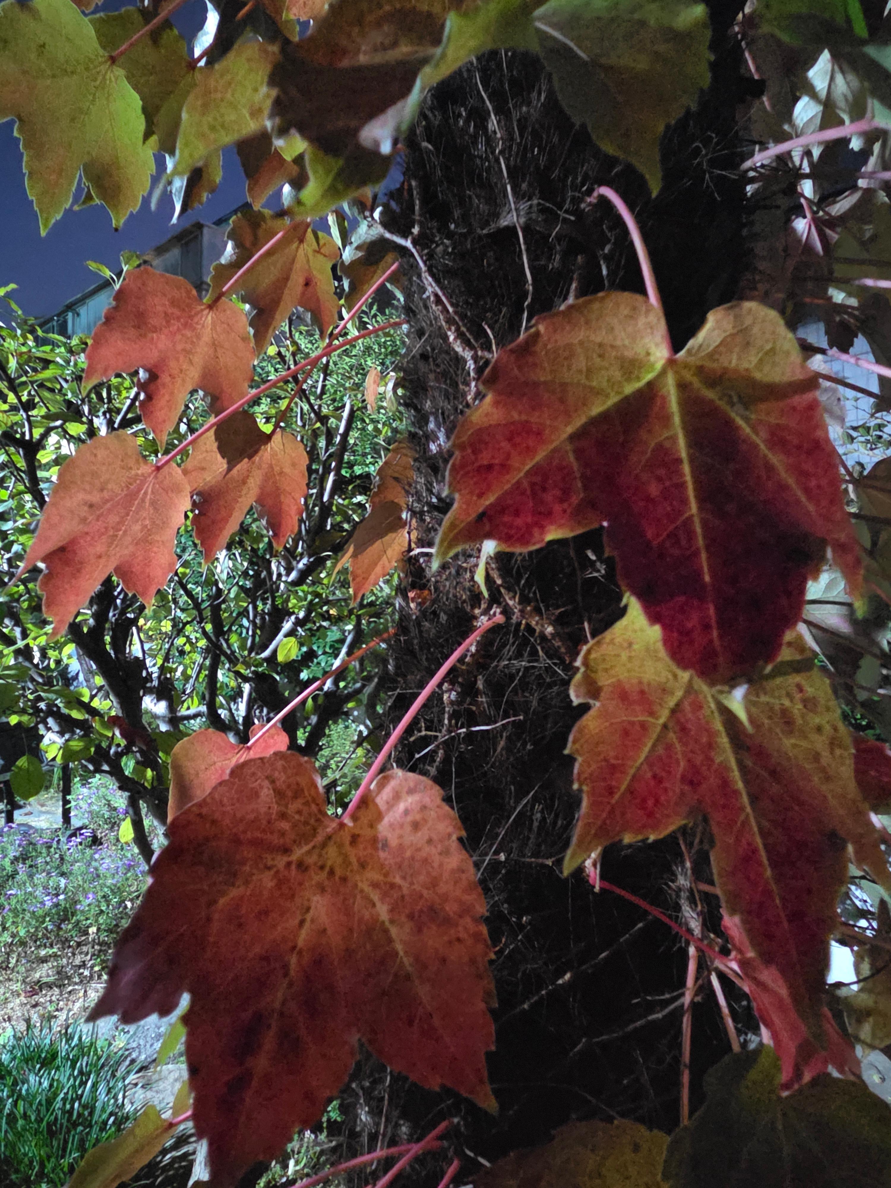 - 야자수를 감싸며 붉게 물든 담쟁이 넝쿨