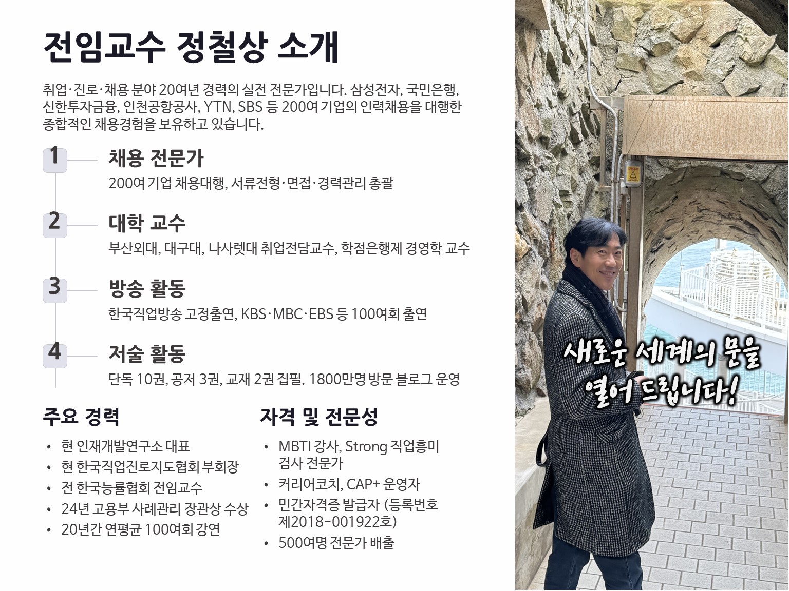 이 교육과정은 20년 이상 취업·채용·진로 현장을 통과해온 한 사람의 경험에서 출발했습니다.