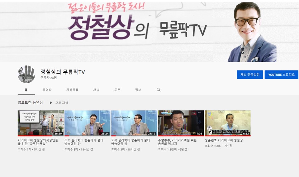 제 유튜브 채널의 이름을 ‘정철상의 무릎팍TV’로 정해봤습니다. 죽어 있던 채널을 하루 만에 좌충우돌하며 재개설하고 채널아트와 썸네일까지 만들어 봤는데요. 오늘 올린 영상은 북포럼에서 직장인들을 대상으로 한 강연내용이랍니다. 재밌게 들으실 수 있을 겁니다.