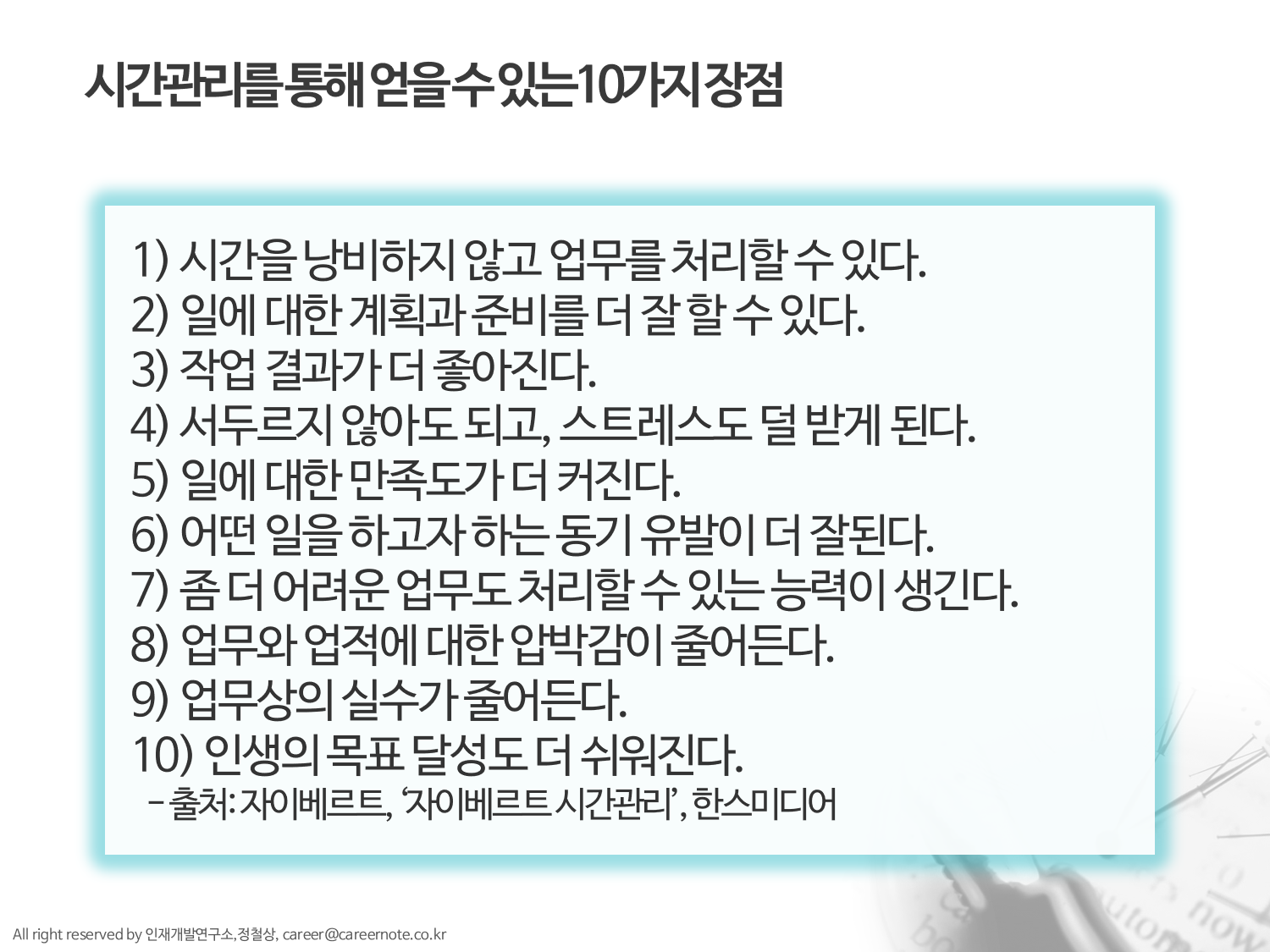 시간관리를 통해 얻을 수 있는 10가지 장점