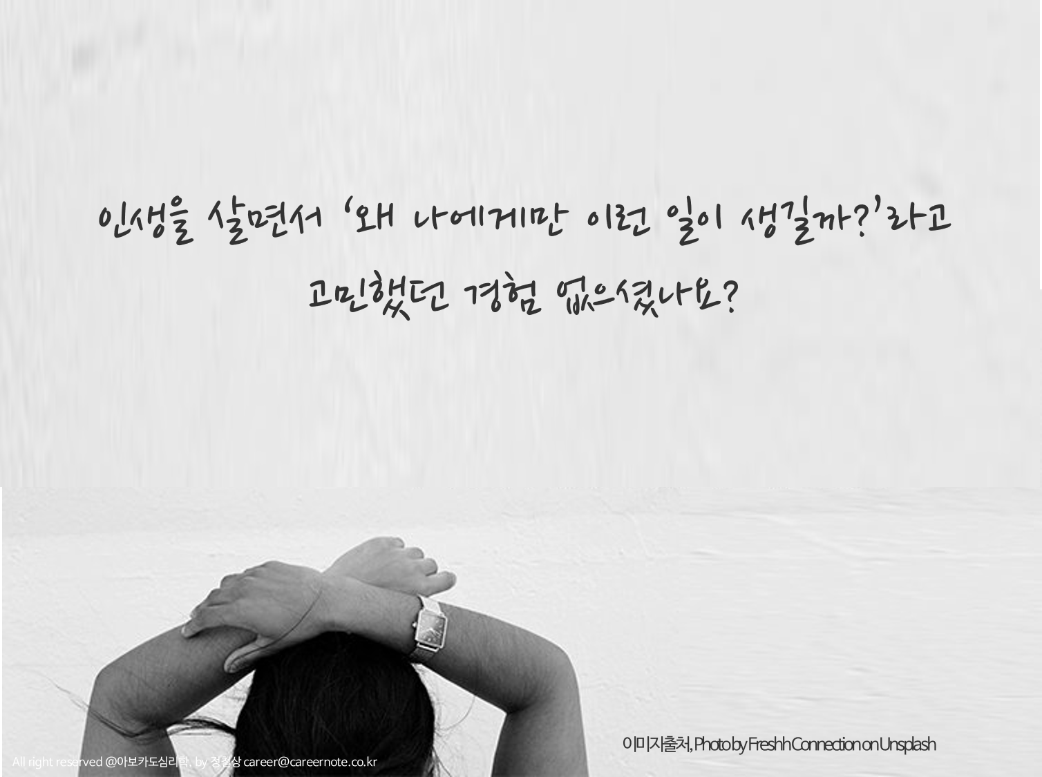 여러분들은 저처럼 인생을 살면서 ‘왜 나에게만 이런 일이 생길까?’라고 고민했던 경험 없으셨나요?