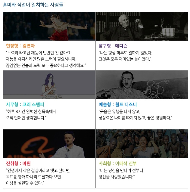 ① 대부분의 사람들은 현실형, 탐구형, 예술형, 사회형, 진취형, 관습형의 6가지 인성유형 중 하나로 분류될 수 있다.