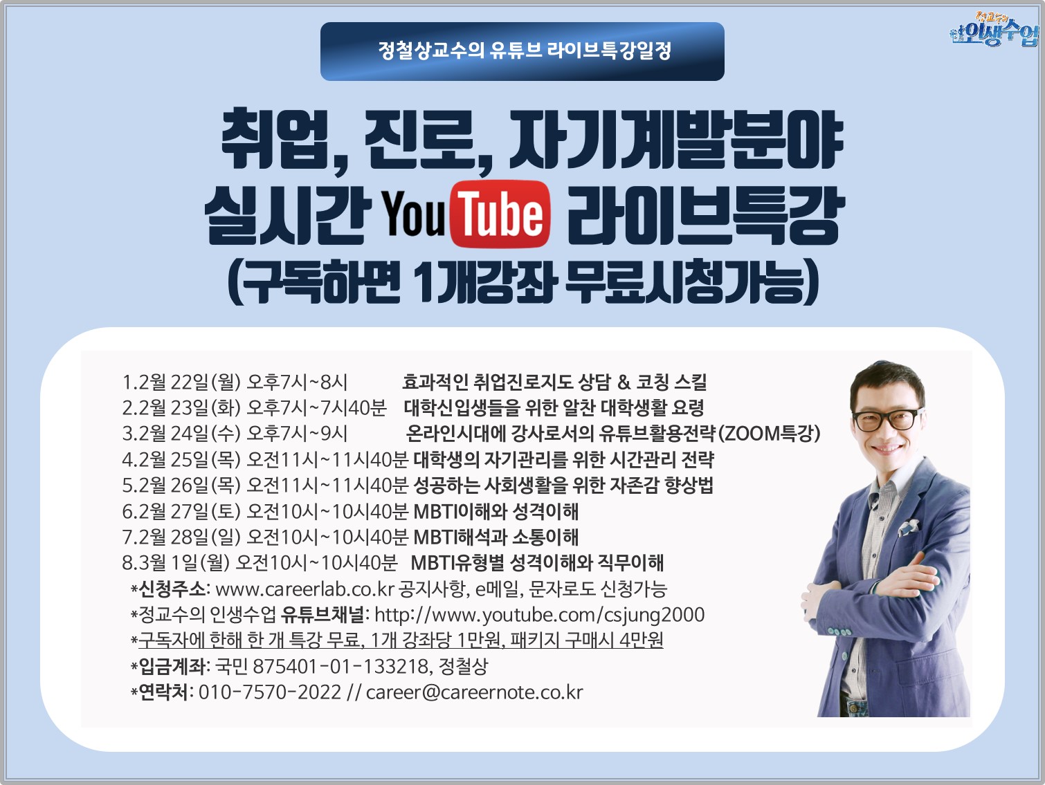 정철상교수의 유튜브 라이브특강일정