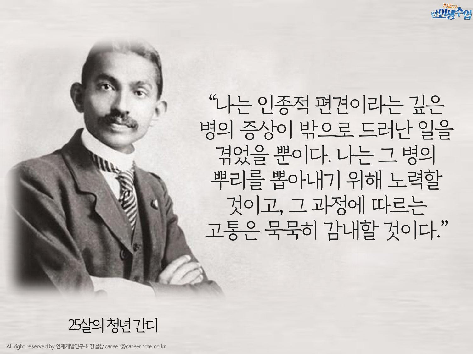 #간디 #마하트마간디 #청년간디 #위대함 #위대함의불씨 #결단 #위대한나 #이창준대표 #리더십패스파인드 #리더십특강 #진정한리더란 #리더의태도 #강사의자세와태도 #교사의자세 #교육자의태도 #특강 #강연 #성장 #동기부여특강 #교육 #온라인강연회 #강사모임 #대학교육 #진로교육 #청년교육 #취업교육 #취업진로지도전문가 #커리어코치 #정철상 #정교수의인생수업