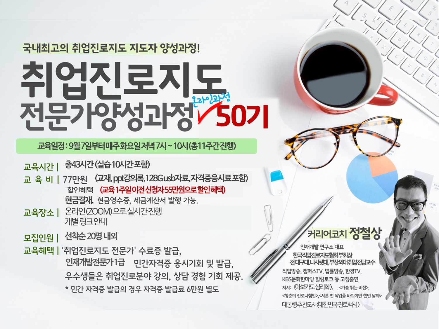 할인혜택 | 교육 1주일 이전 신청자 55만원으로 할인 혜택 (자격증 발급료 6만원 별도)